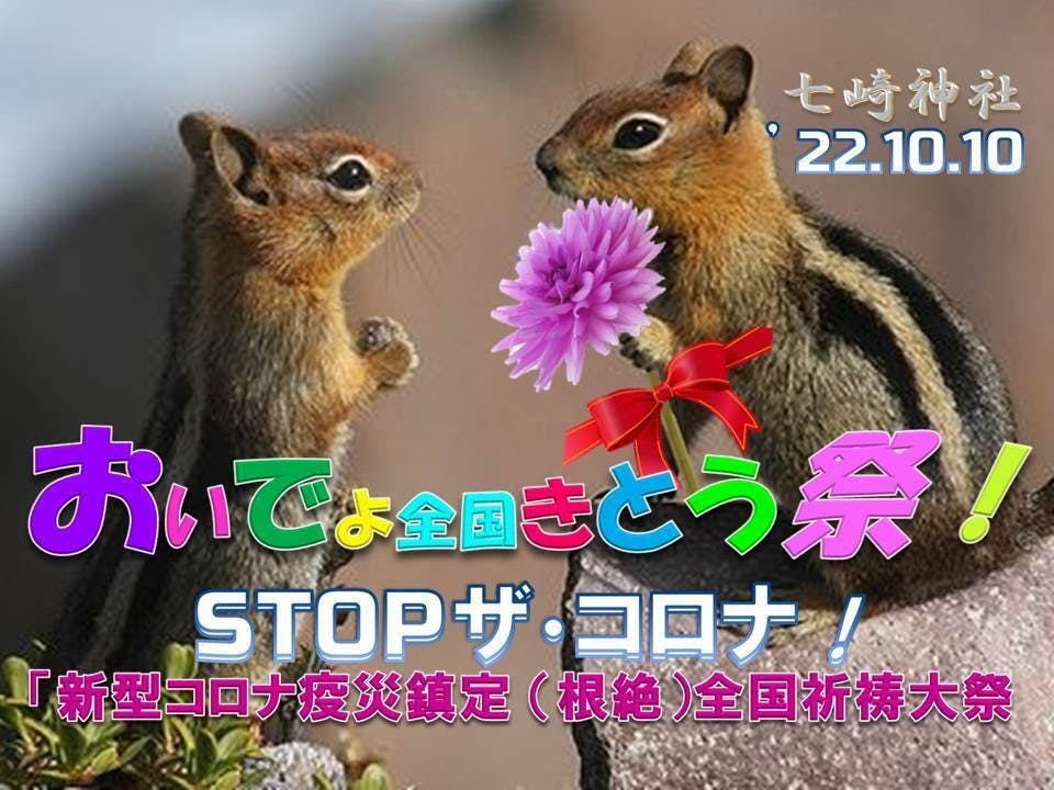平和の象徴「北斗七星」に願いを託し、新型コロナによりふりかかってくる、わざわい・不幸なできごと ・災難を、強運を授ける「七崎神社」の御祭神 の力により抑えて頂き、平静な状態に戻し、秩序を回復させて頂く為の祈祷(きとう)大祭として、 御支援頂いた皆様を御招きし、ご一緒に「コロナ疫災根絶(鎮定)全国祈祷大祭」を開催します!