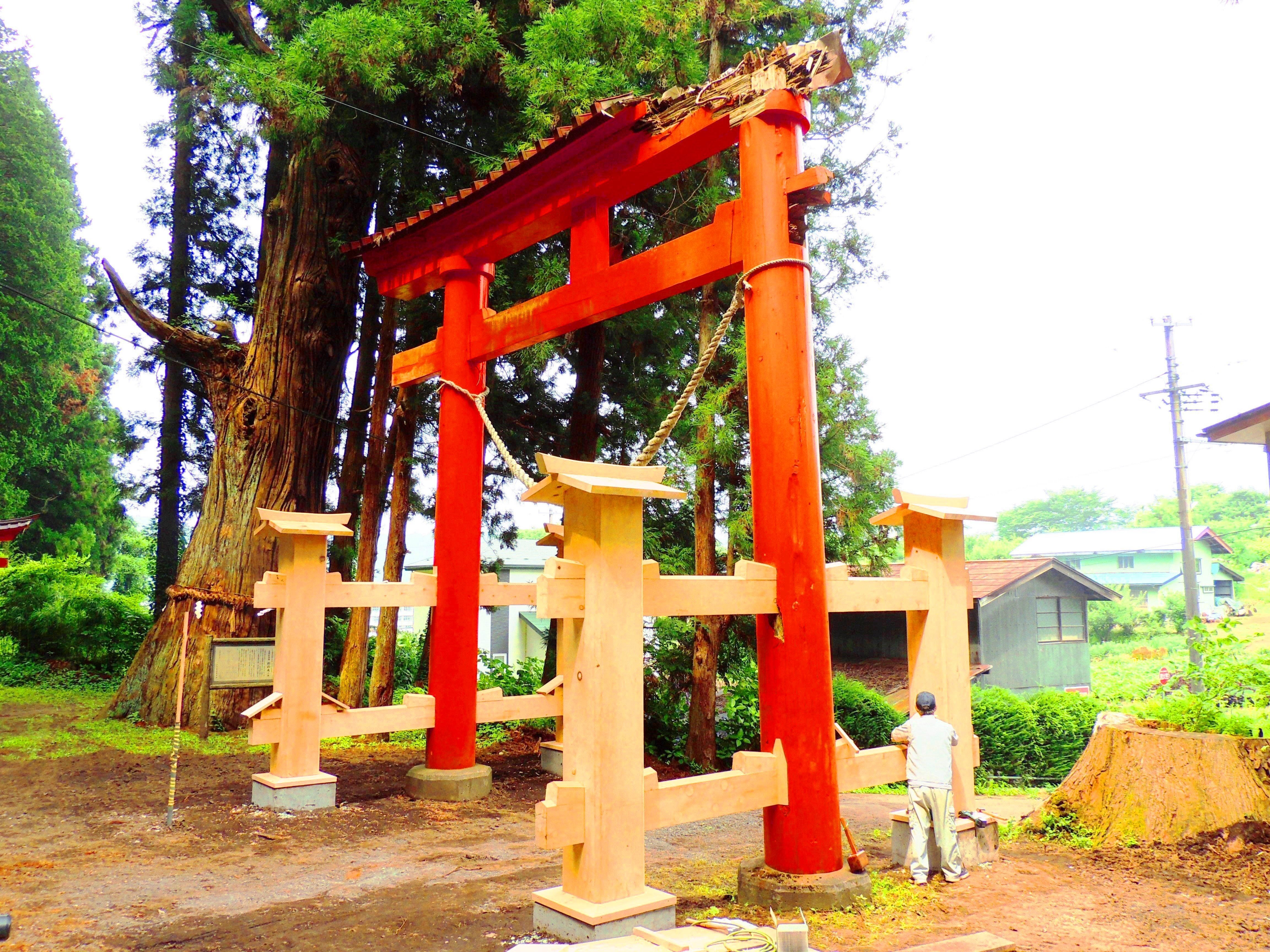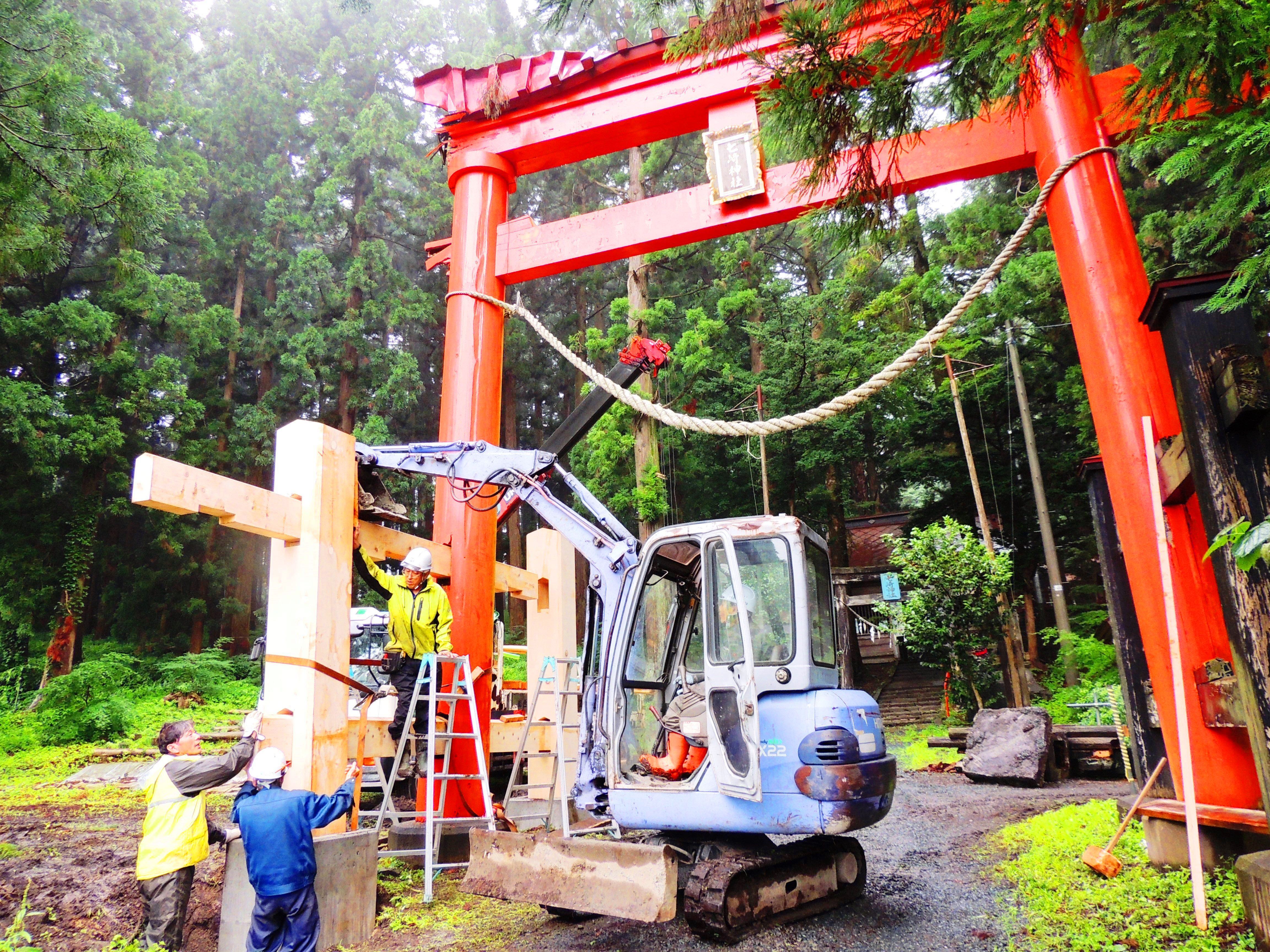 地元地域の人口500名の減少やコロナの影響で経済が沈んでいるなど、様々な事由に伴い、目標金額にはまだまだ届いていないのが実情です。しかし、「希望の星☆大鳥居】 の9月末完成を目指し、再建工事が本日からスタート致しました。