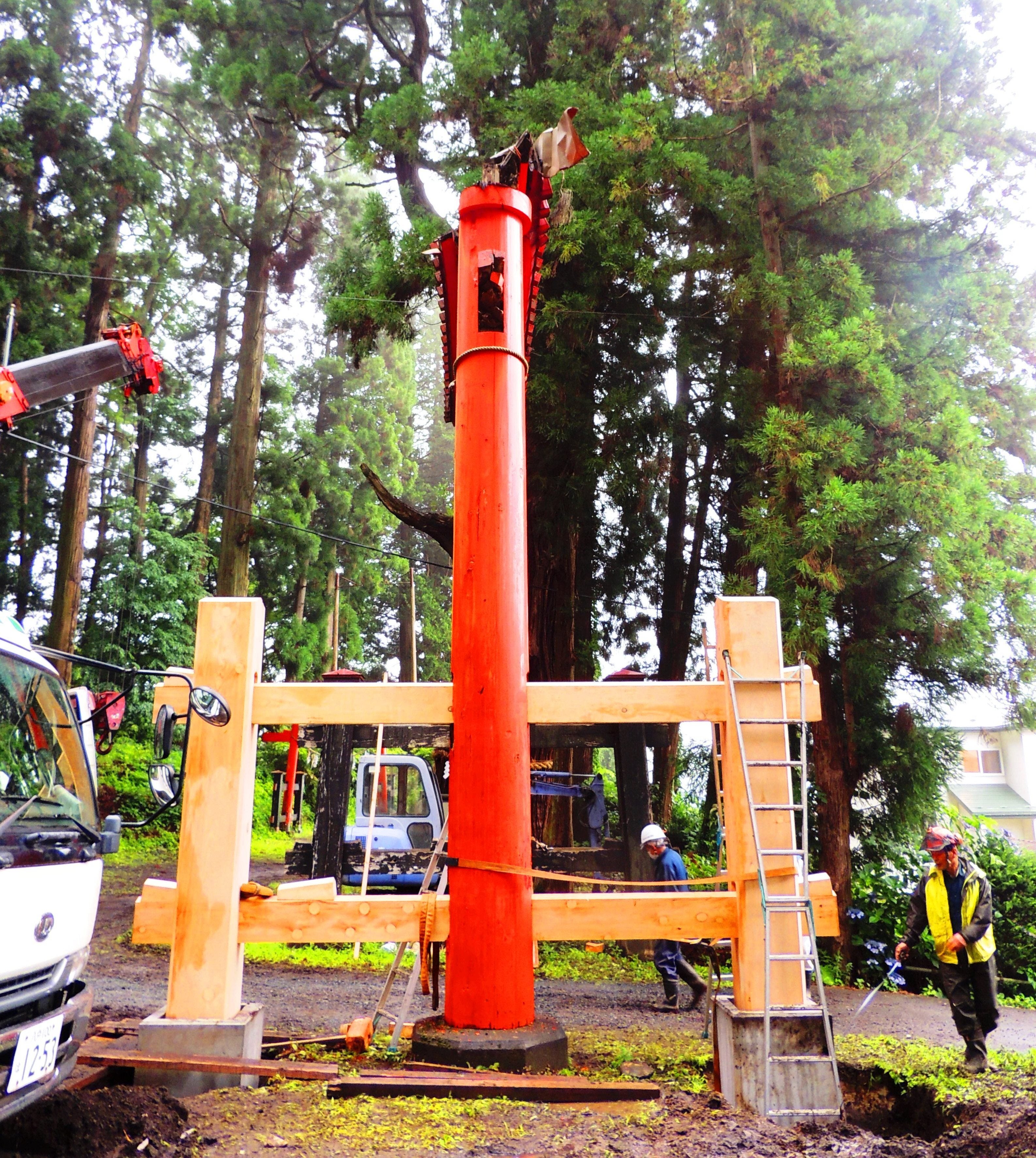 「甦れ!希望の星☆大鳥居】の再建工事スタートの模様を画像でご紹介いたします。