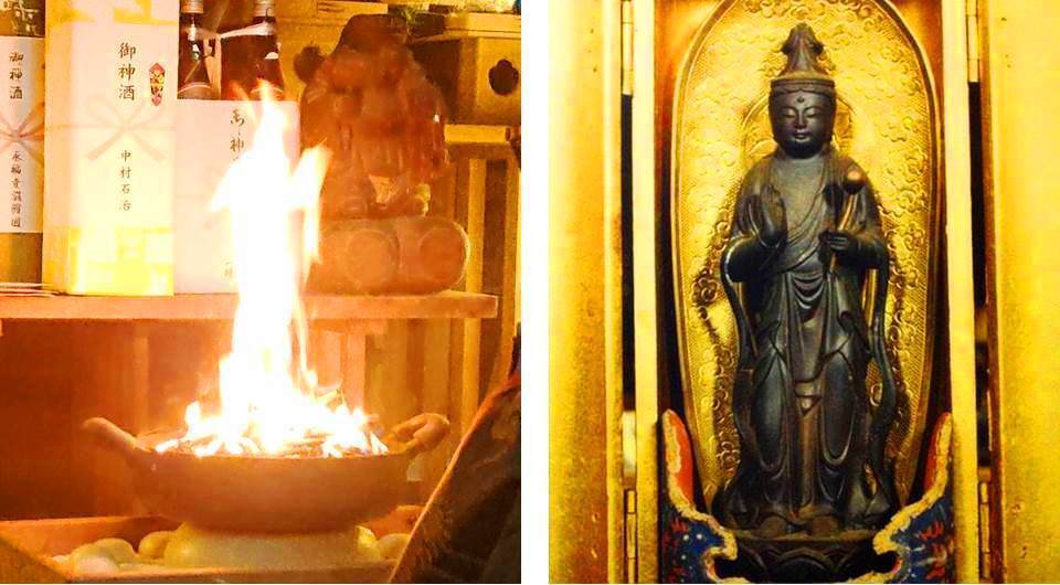 神事「お籠り(おこもり)」の儀式では、聖観音菩薩ご本尊(通称:七崎観音)が、燃え上がる炎と化し御神体を現し御祭神の思召しを、私たちに”目に見える現象”でお伝え下さりました!