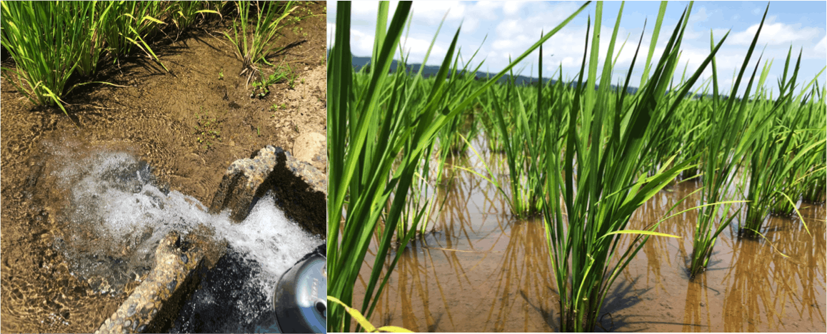 ②暑さが厳しいときに出穂のタイミングが重ならないよう、田植え時期を調整しています。こうすることで、夏の猛暑の際に、稲へのダメージを減らすことができるといいます。また、田植え前に深くまで耕しておくことで、しっかりと根を張って立派な稲穂に成長。土からの養分をたっぷりと吸収して育ったコシヒカリは、旨味がぎゅっと凝縮されます。
