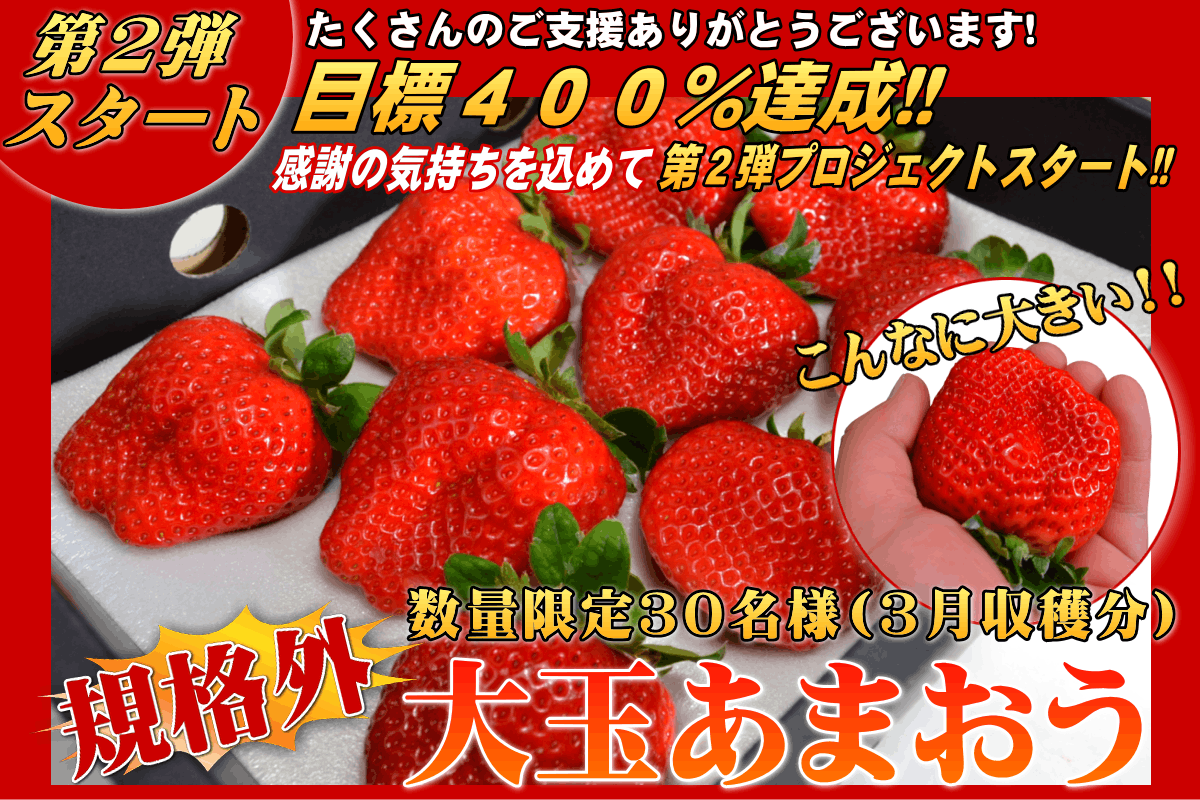 おかげさまで目標400%達成!第2弾大きすぎて規格外大玉!あまおうを食べて欲しい