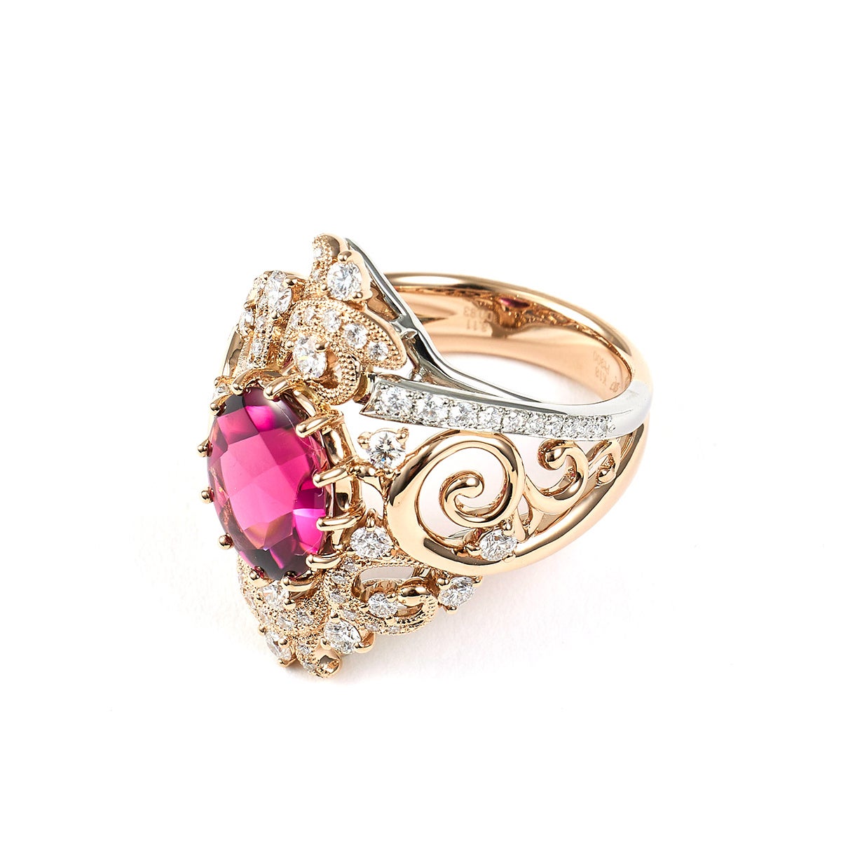 8mmx10mmの大粒で上質なピンクトルマリンを大胆に使用した、