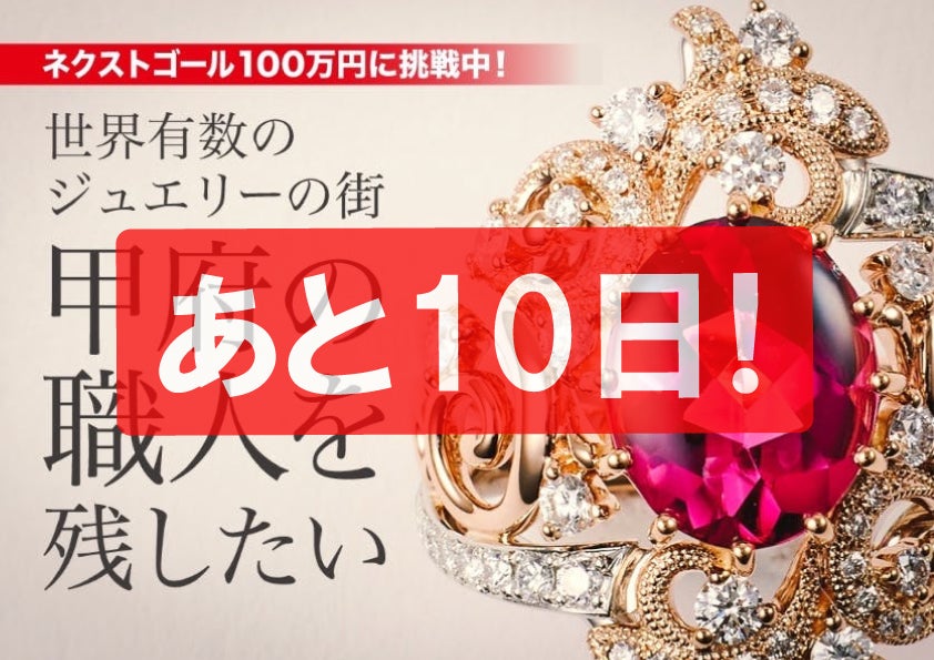 B.L.S.です!Campfireクラウドファンディング「宝石の街・甲府の職人を残したい!【甲府宝飾協会】を立ち上げます」プロジェクト終了まで、残すところあと10日となりました!!!これまでに御支援や応援コメントを頂きました皆さまに感謝を申し上げます。また、当プロジェクトをご覧頂きました皆さまにも感謝致します。残りの時間を大切に頑張って活動して参りますので、プロジェクト終了まで応援を宜しくお願い致します!