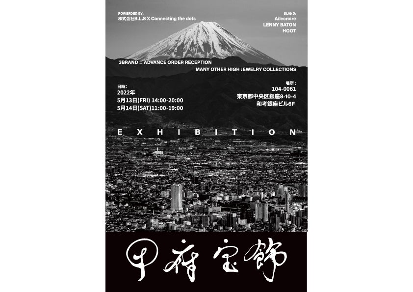こんにちは!B.L.S.です。「宝石の街・甲府の職人を残したい!【甲府宝飾協会】を立ち上げます」campfireクラウドファンディングにて実施中です!そして、残すところあと15日となりました。ご支援を頂いております皆様に感謝申し上げます。引き続き活動してまいりますので宜しくお願い致します!今回は、リターンにもあります「甲府宝飾展示会」について詳細が決まりましたので ご案内させて頂きます!5月13日~14日の2日間場所は、東京中央区銀座8-10-4和考銀座ビルの6階です。自社ブランド3ネームと他多数のハイジュエリー、ファッションジュエリーを取り揃えておりますので、ご興味ありましたら是非足を運んでいただけますと幸いです。今回のリターンにはこの展示会で使える優待割引券もご用意しておりますのでチェックしてみてください!宜しくお願い致します!