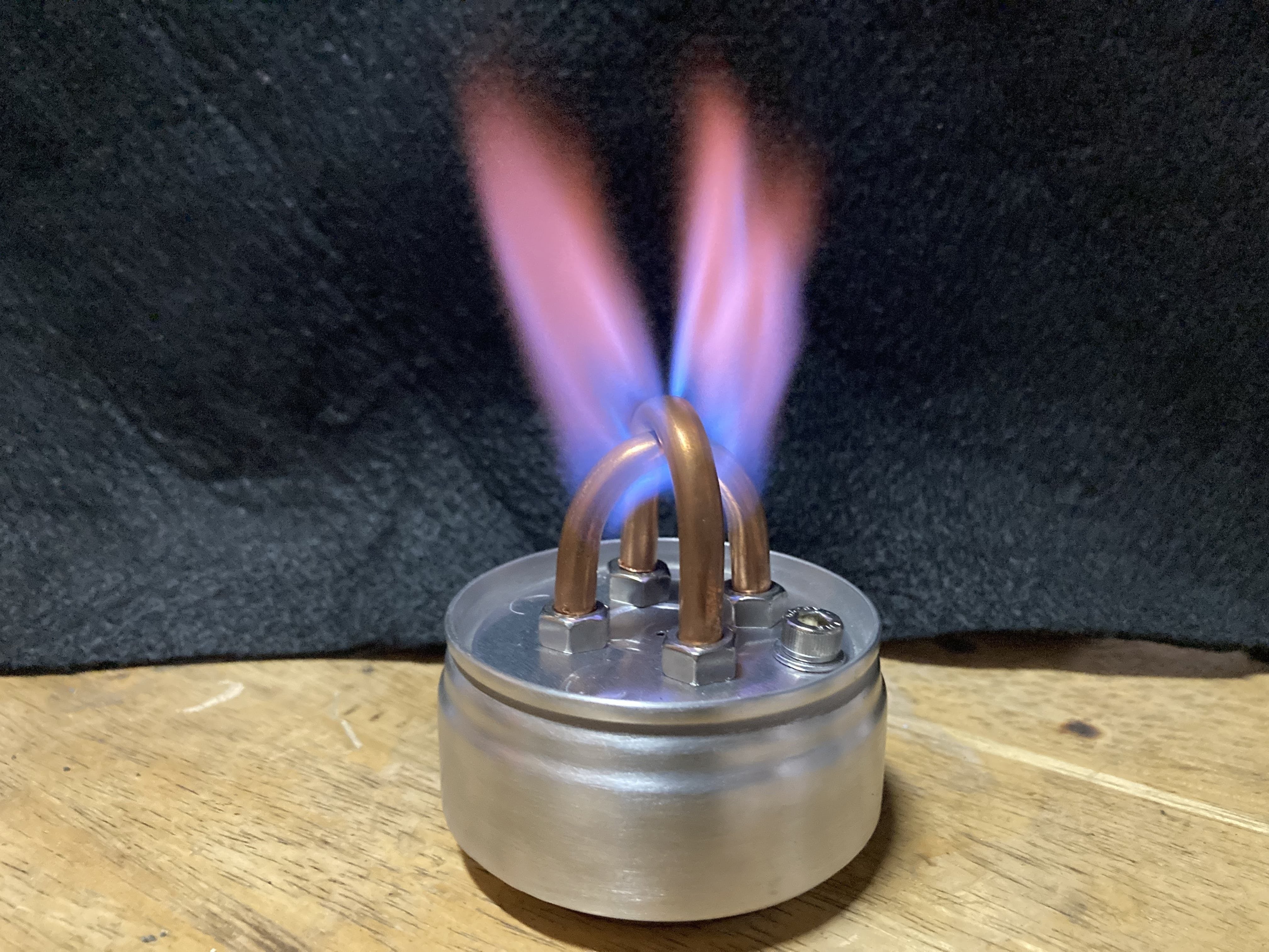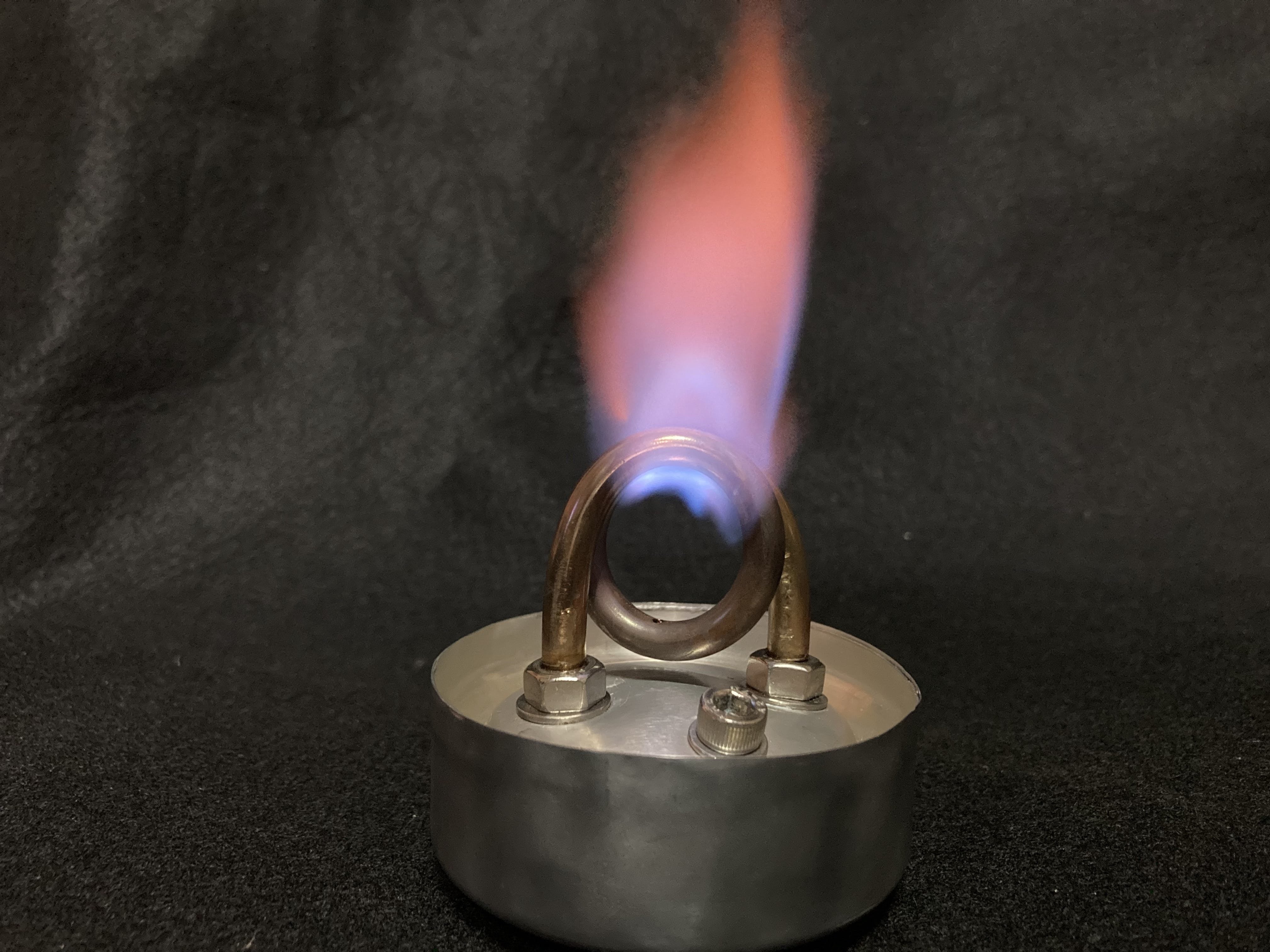 ・本体上部にアルコール垂らして着火する方法と銅管自体をトーチで炙って着火する方法があります。お好みの方法で点火してみて下さい。
