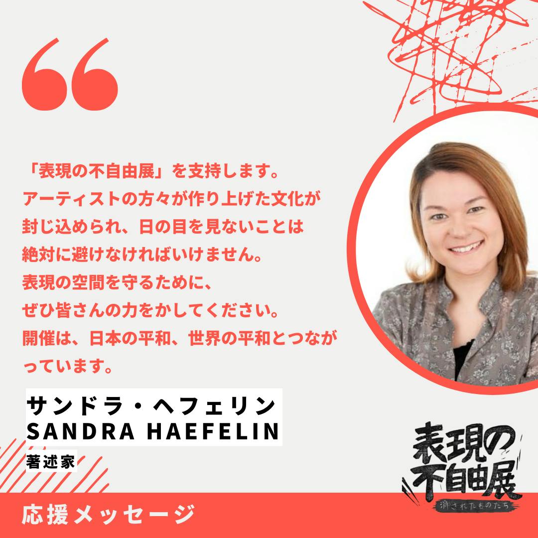 サンドラ・ヘフェリンさん(著述家)より、応援メッセージが届きました!