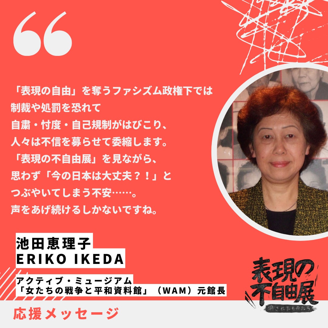 池田恵理子さん(アクティブ・ミュージアム「女たちの戦争と平和資料館」(WAM)元館長)より、応援メッセージが届きました!