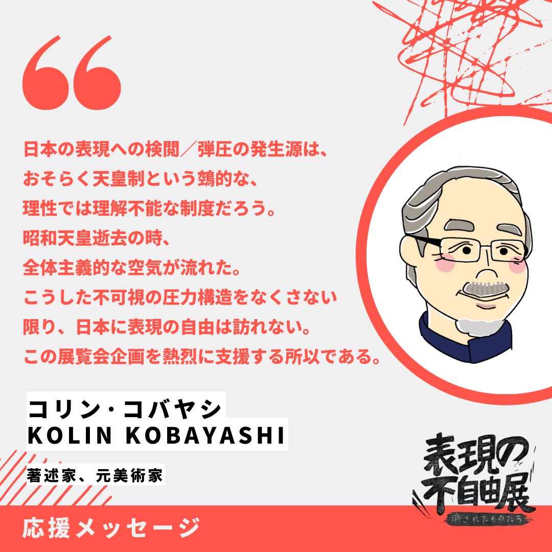 【著述家、元美術家】のコリン・コバヤシさんより、応援メッセージが届きました!