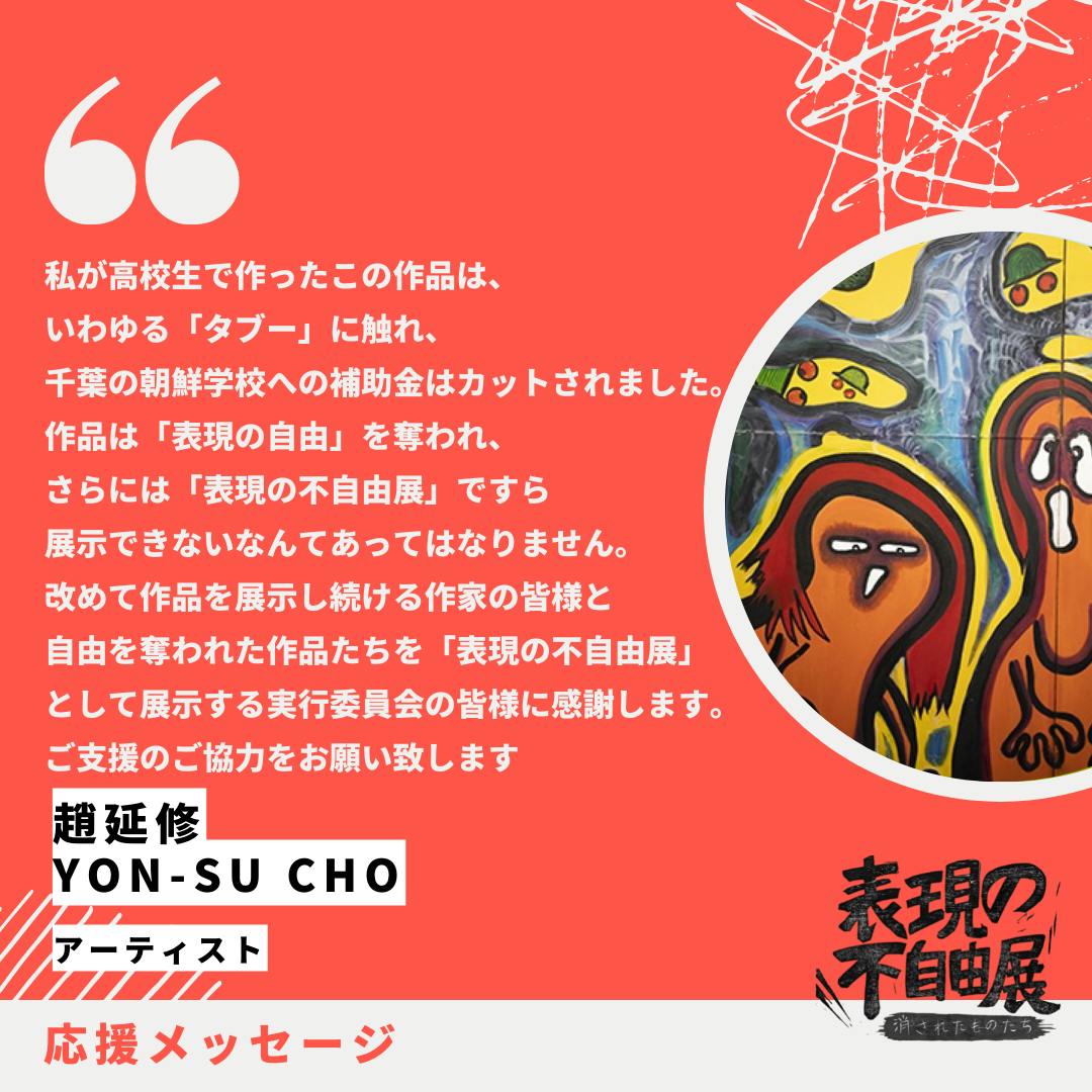 \不自由展クラファン応援メッセージ/ 【アーティスト】の趙延修さんより、応援メッセージが届きました!趙延修さんは「表現の不自由展」出展作家でもあります。プロジェクト詳細 https://camp-fire.jp/projects/view/556785 引き続きご協力をよろしくお願いします!