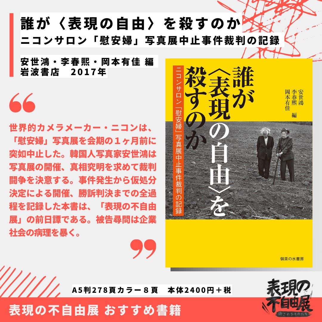 \不自由展がオススメする書籍情報③/ 『誰が〈表現の自由〉を殺すのか〜ニコンサロン「慰安婦」写真展中止事件裁判の記録』 不自由展が始まるきっかけともなった事件の記録…! ※こちらの書籍はクラファンリターンにも設定されています。