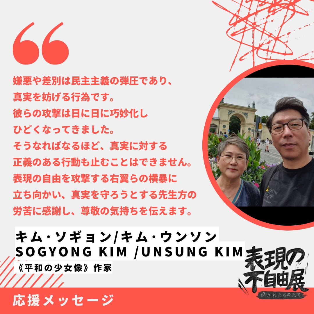\不自由展クラファン応援メッセージ/【ドイツ・コリア協議会代表】の韓静和さんより、応援メッセージが届きました!引き続き、拡散&支援のご協力をよろしくお願いいたします!#表現の不自由展 #クラファン挑戦中