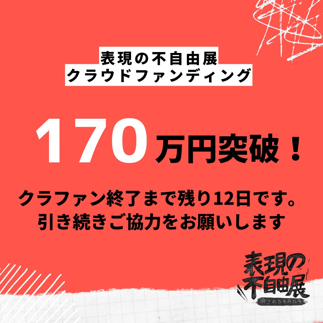 200人以上の方にご支援をいただき、クラファン170万円まで到達しました!ご支援いただきました皆様、本当にありがとうございます!! ■現在の達成率:38%■クラファン終了日:4/15■資金の使いみち:警備スタッフ経費や弁護士費用など(詳細はクラファンページに掲載)引き続き、拡散&ご支援をよろしくお願いいたします!https://camp-fire.jp/projects/view/556785