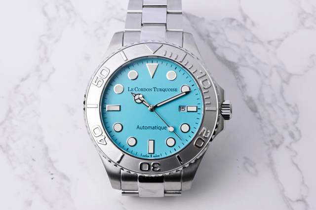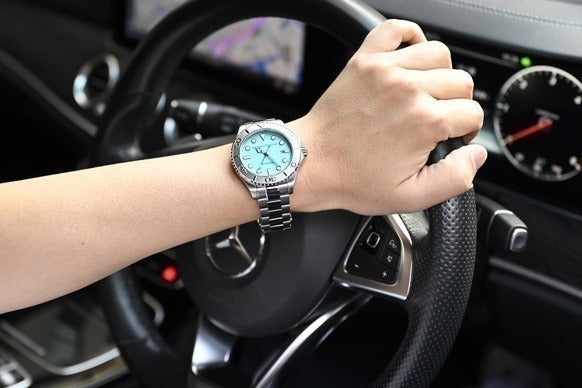 ダイヤルの美しいアイスブルーに加え、