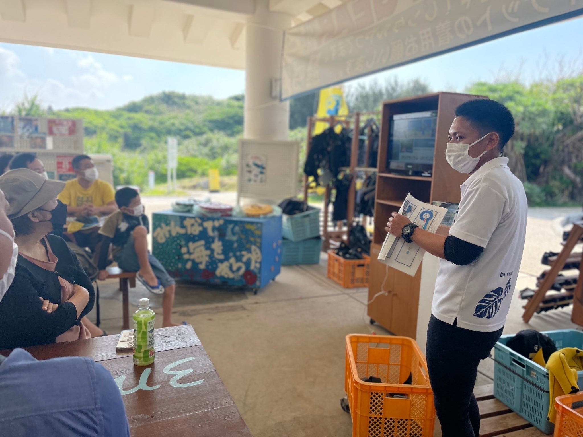 当日は恩納村サンゴ礁保全再生活動地域協議会 山城会長からご参加のみなさんへのメッセージをいただき、この植付けが20年以上の年月をかけ進化しており、サンゴたちもそれに伴い成長して現在も生息していることをお話し頂きました。