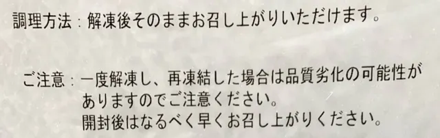 重要事項)常温(室内)解凍は、菌の増殖を招きますのでお辞めください。