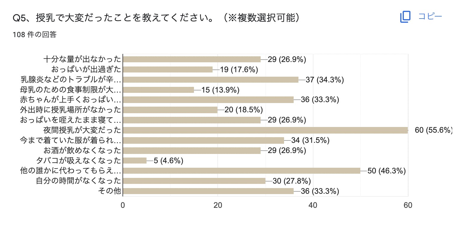 授乳経験のある108名の方にお聞きしたアンケート結果をご報告いたします。