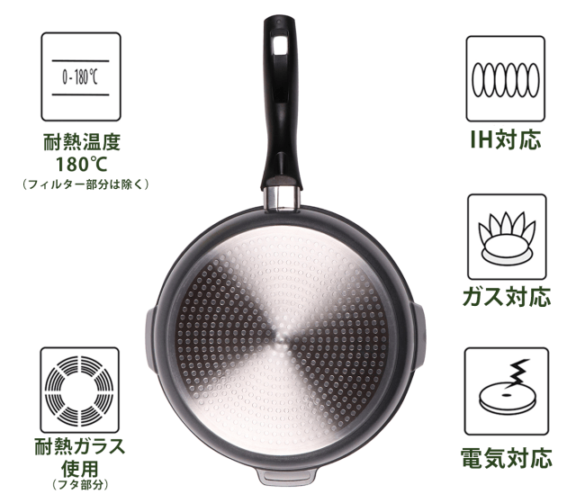 IH、電気、ガス、オーブンなど、台所にあるほとんどの調理機器でご利用頂けます。