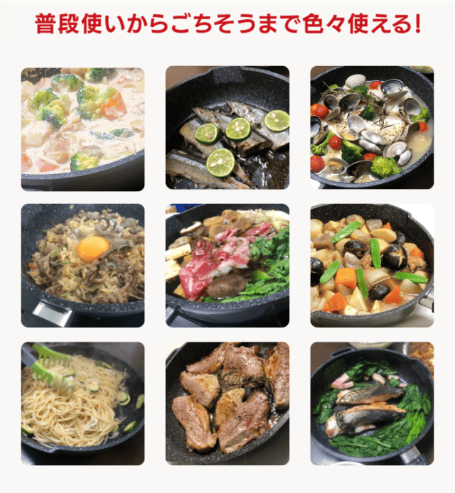 深さもあるので料理もしやすいです。フライパンを振ってもこぼれにくく、毎日のお料理にご利用頂けます。