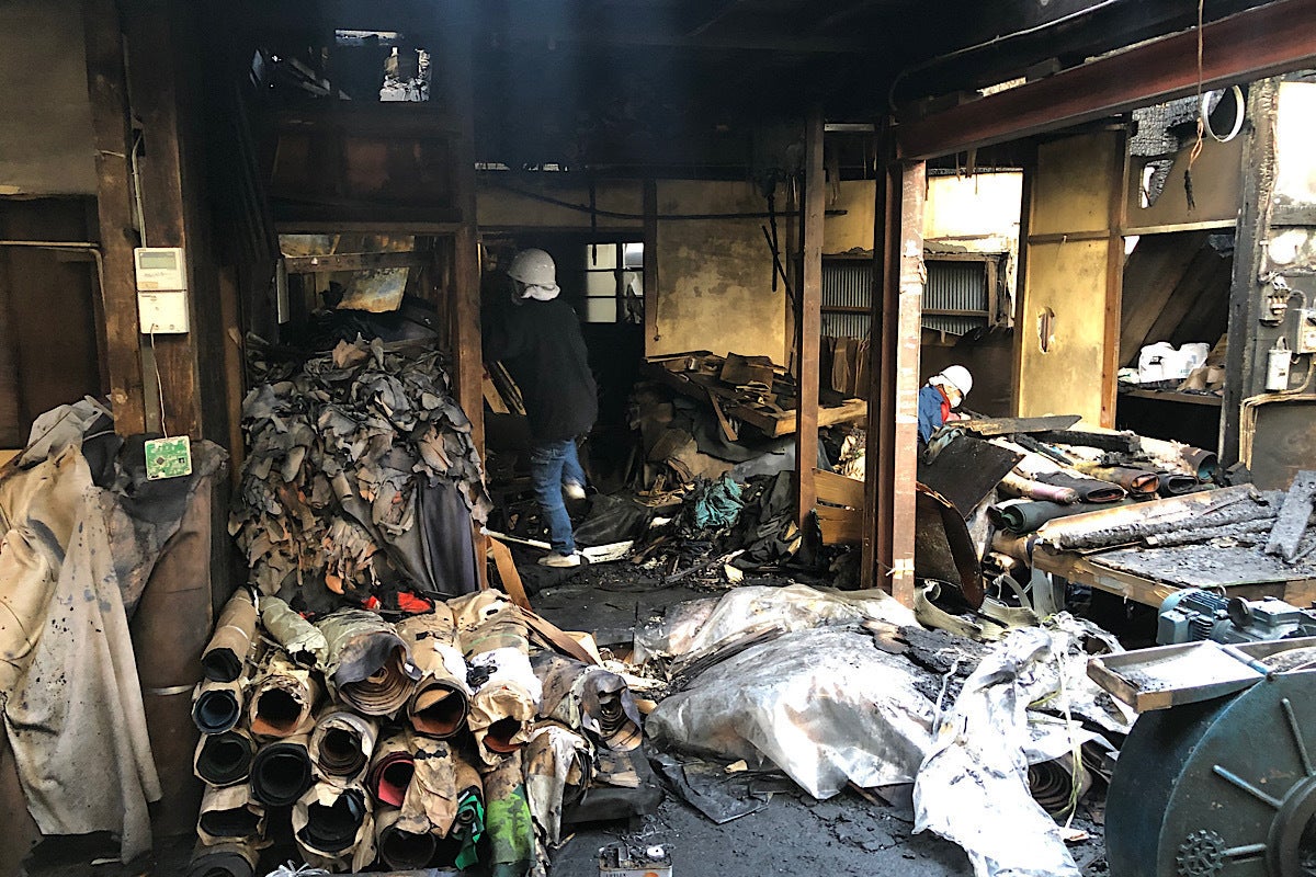 近隣の方が1名煙を吸って搬送されたそうですが命に別状はなく、職人も無事でした。しかし結果として家屋は全焼、漉き加工機材も被害を受けました。