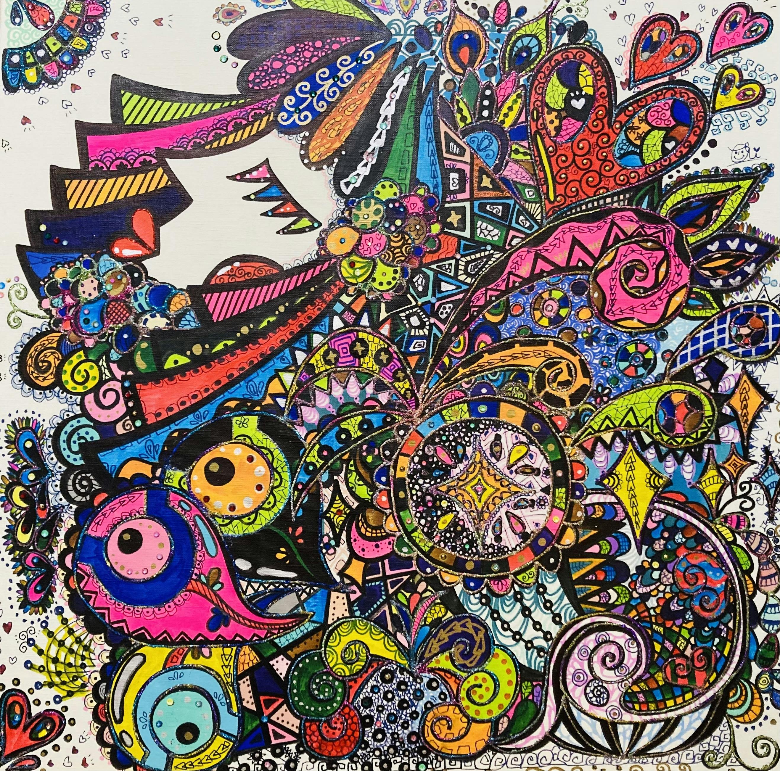 \可愛い横顔とカラフル模様で独特の世界観アート/
