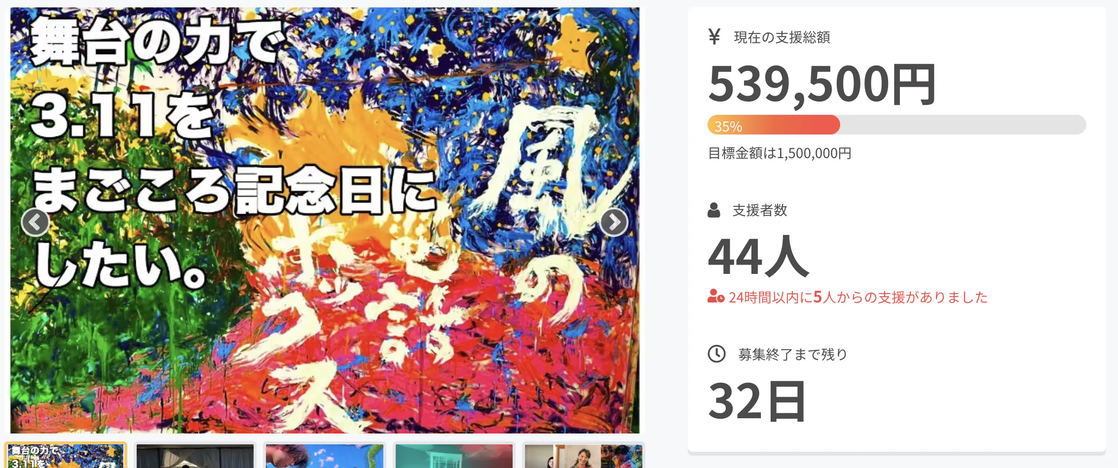 おかげさまで、このクラファンがスタートしてから6日の間に、44名の方からご支援をいただくことができました。