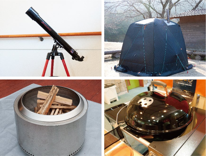 例えば、「土星の輪っかも見えるけど初心者お断りの天体望遠鏡」「何の相談もなしに、ただ欲しいというだけで10台買ってしまい上司に怒られたソロストーブ」「県下でいち早く導入したテントサウナ」「豚の丸焼きができると言ったら、ほんとに焼いたお客様がいて、こればかりはやられた!と感じたアメリカンスタイルのBBQグリル」などなど。