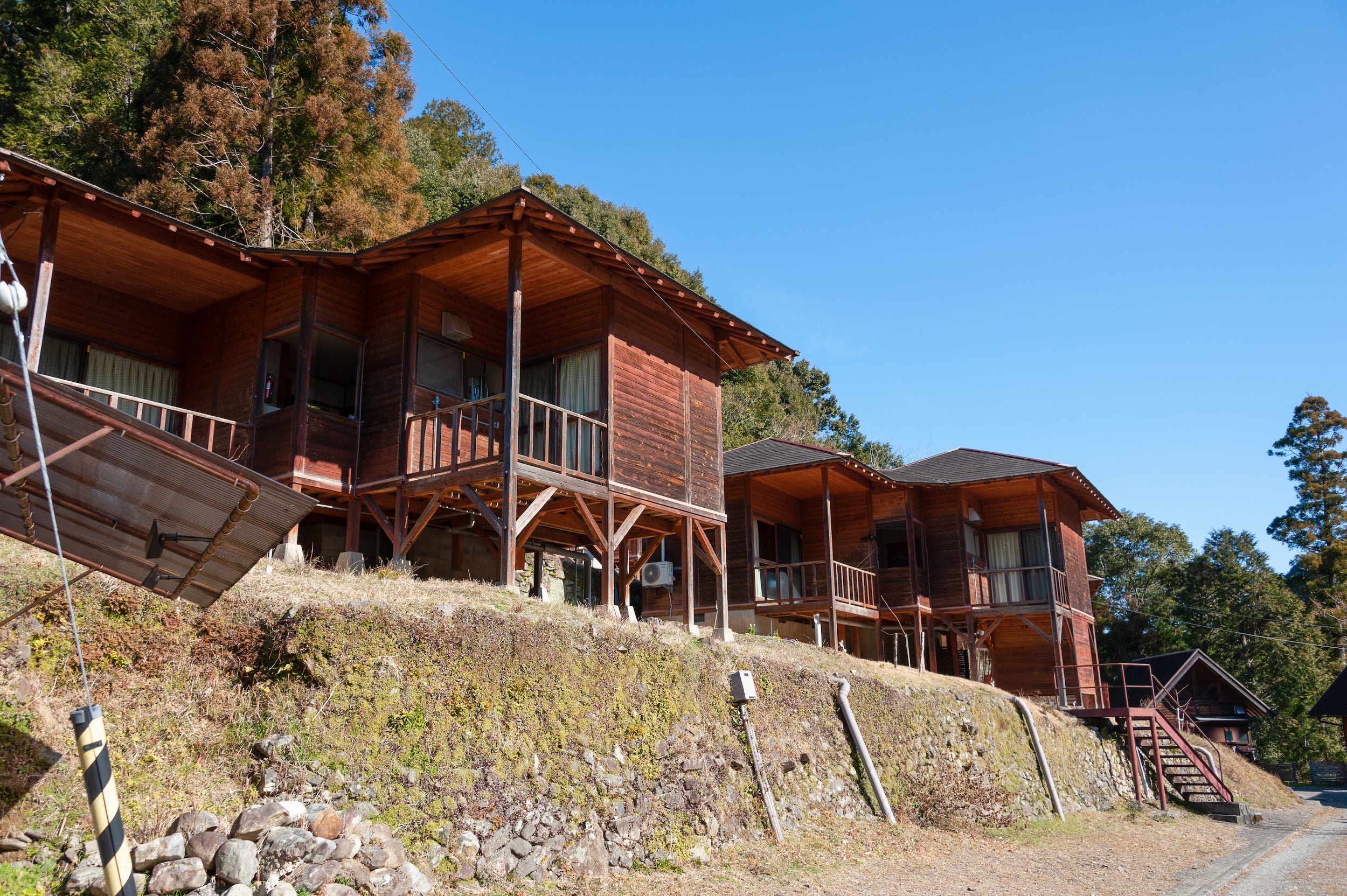 総面積3500㎡の敷地内には、約40のテントサイトと紀州材を使った全10棟のログ・コテージ、美人の湯と言われる重曹泉(ナトリウム-炭酸水素塩・塩化物泉)が楽しめる温泉センターが併設されており、コテージ、キャンプ場の宿泊利用者様は営業時間内であれば温泉に入浴し放題です。