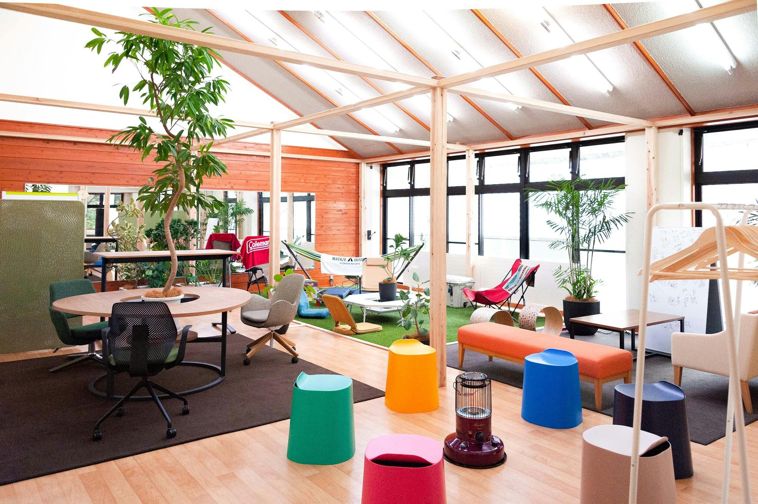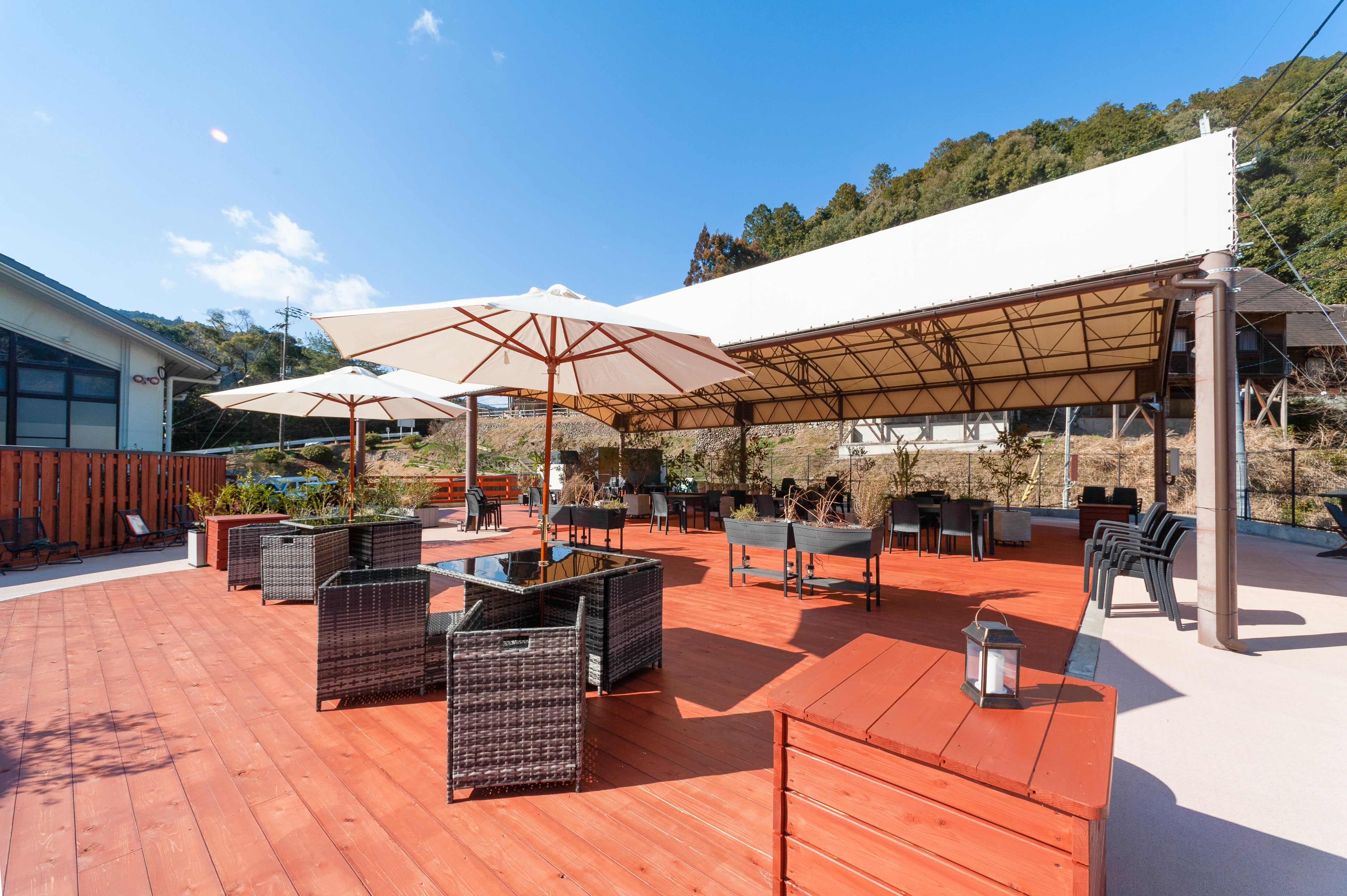 コワーキングスペースは時間貸しで最大10人まで利用可能。また会議室もあり、施設自体は 70人規模で宿泊できるので、会社単位の研修にだってご利用いただけます。またロングステイも楽しんでいただけるようランドリーブースを設置し、もともとプールだったところをオープンデッキに改築して交流できる空間も設けました。日常からかけ離れた大自然のなかの研修は、感覚が研ぎ澄まされ、仕事にも学習にもいつもと違う姿勢で臨めるに違いありません。