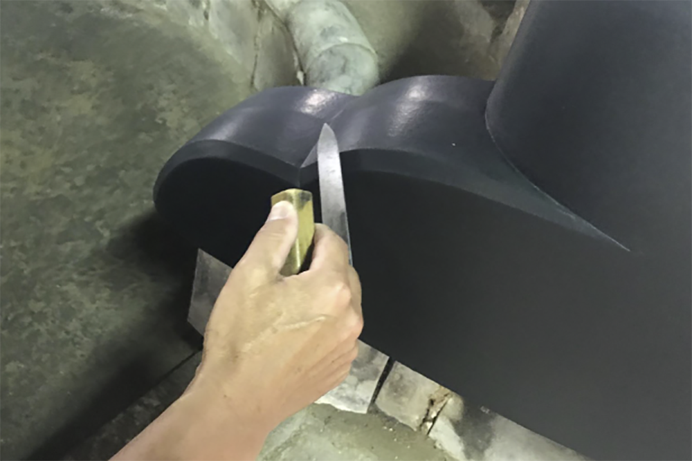 重要文化財 法隆寺の中院本堂壁、宝蔵院土塀修復工事や、国宝の薬師寺東塔壁工事など、数多くの文化財施工実績があり、一級左官技能士の腕前を持つ宮奥さんは、手間と時間をかけても伝統的な漆喰にこだわっている職人さんです。
