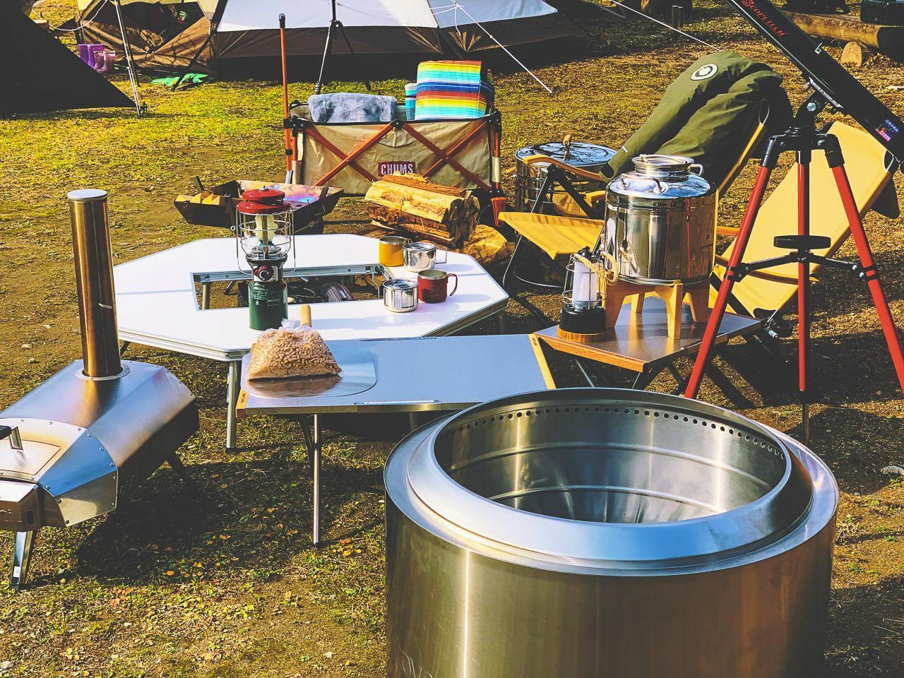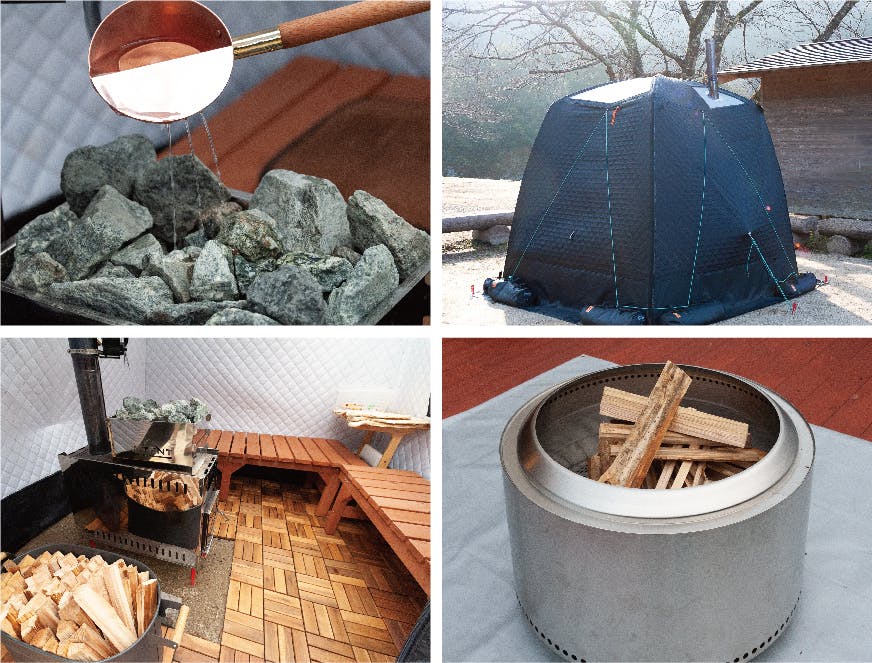 本格スチームサウナを体感できるテントサウナも県下でいち早く導入しました。ちなみにソロストーブにハマり、今では10個のラインナップにまで増えたため、運営側から「もう勘弁してくれ!」とお叱りが…(すみません!)。