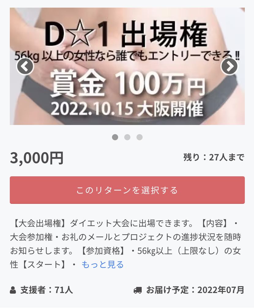 いつもご支援ご協力頂きありがとうございます(^^)出場者が80人超えました!100人以上のエントリーにそこで私エステサロン2代目の鎌野が押したいリターンがあります!それはこれーーーーーー↓↓↓またぁコレと思われる方もいらっしゃるかもですがwそうなんです!またコレなんですwwwだって、100人以上の中からベスト3位になるメソッドって知りたくないですか?私のエステサロンでもダイエットをやってます。今は、試行錯誤をし綺麗に痩せられ成功してますがでも、進化はし続けたい!そう思い、どんなダイエットをしたのか知りたくて購入した次第です♪(ファイナリストに選ばれるのは、体重・体脂肪の差だけでなく、魅力的、感動的を感じれる方です★)私は知りたくて実行委員の力を使ってw 無料でくれるかと思いましたが、ダメらしくーーー 爆笑クラファンで即、購入♪100人以上になると、グランプリの確率は下がりますがその分、メソッドの真実味が増す!!!買わなきゃ損!損!(≧∇≦)b6月25日まであと4日まだまだやっぱり頑張ります!!!ご支援及びエントリー、SNSなどで拡散して頂いた皆様感謝申し上げます。引き続き、SNS等で拡散・応援頂けたら嬉しいです!一般社団法人日本女性煌めき推進協議会第3小委員会 鎌野ゆきからの活動報告でした(^^)