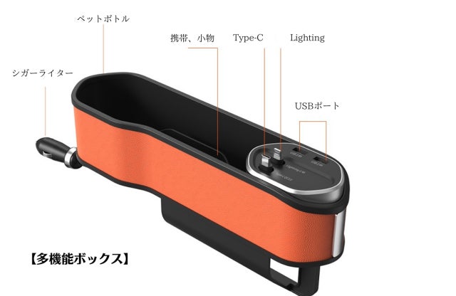 付属品:Lightning(2.4A)/Type-C(QC3.0)、USBポート2個(2.4A)、シガーライター、取扱説明書