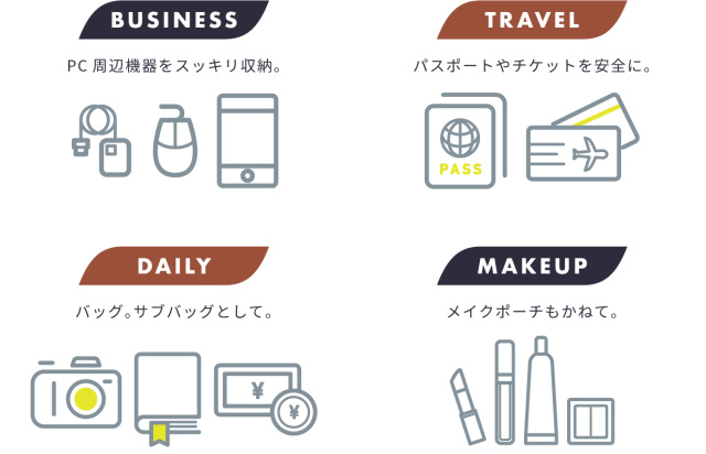 あらゆるシーンにフィットするポーチ/バッグをご紹介します。