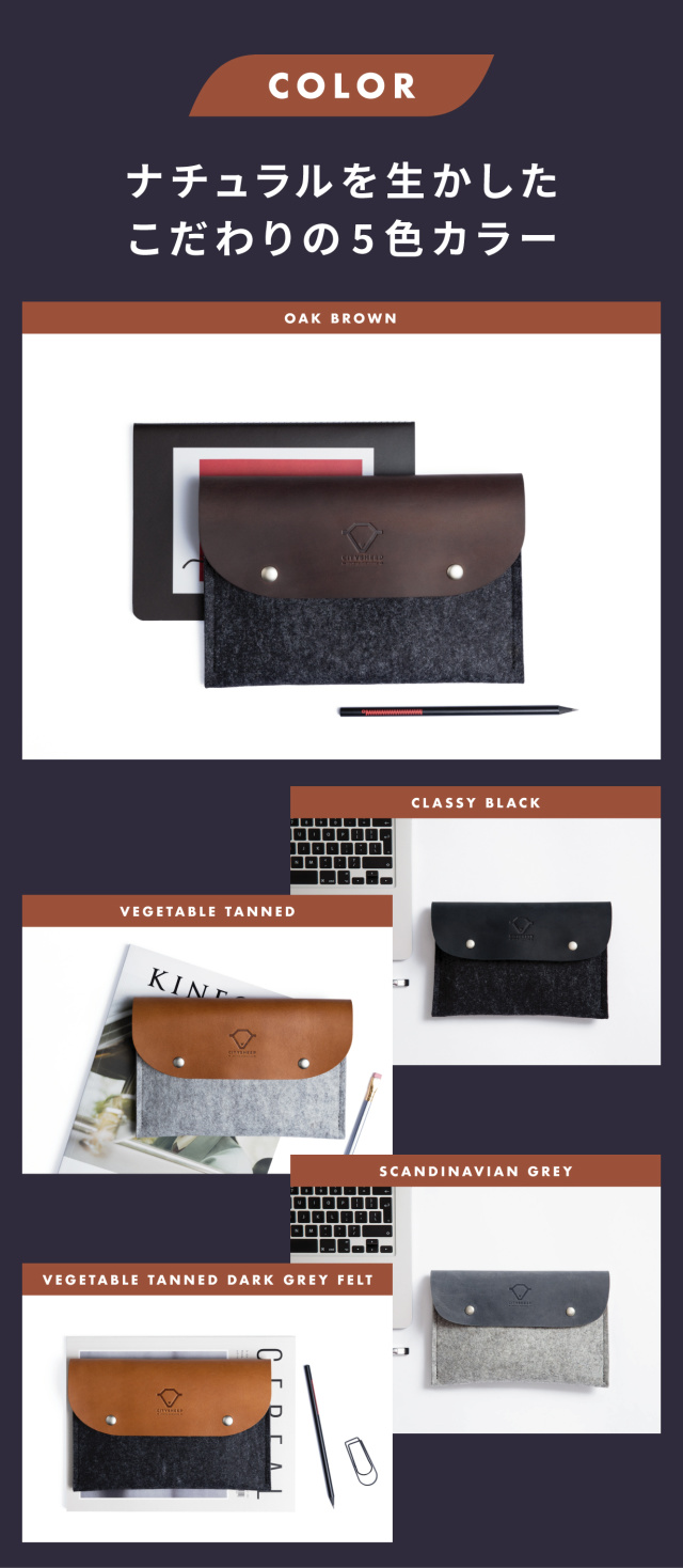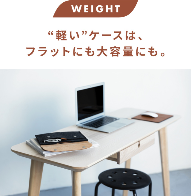 たとえば、ケースに水をこぼしてしまっても慌てなくてOK。さっと拭くだけ。バッグの中でどこかにぶつけても、落としても、フェルトのクッション性が守ってくれます。
