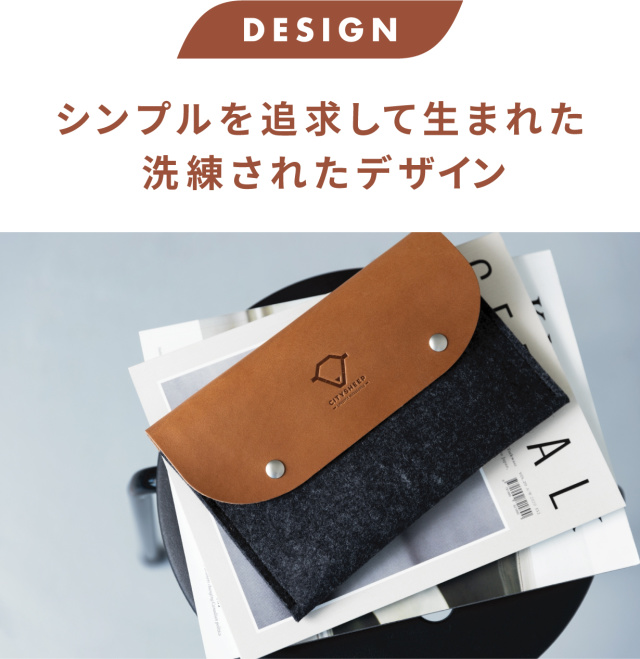 いい素材の特長をシンプルに生かすと、自然とデザインが洗練され、ミニマルさと都会的な印象を兼ね備えたアイテムに。心地よい手触りは、持ち歩く楽しみにもつながります。