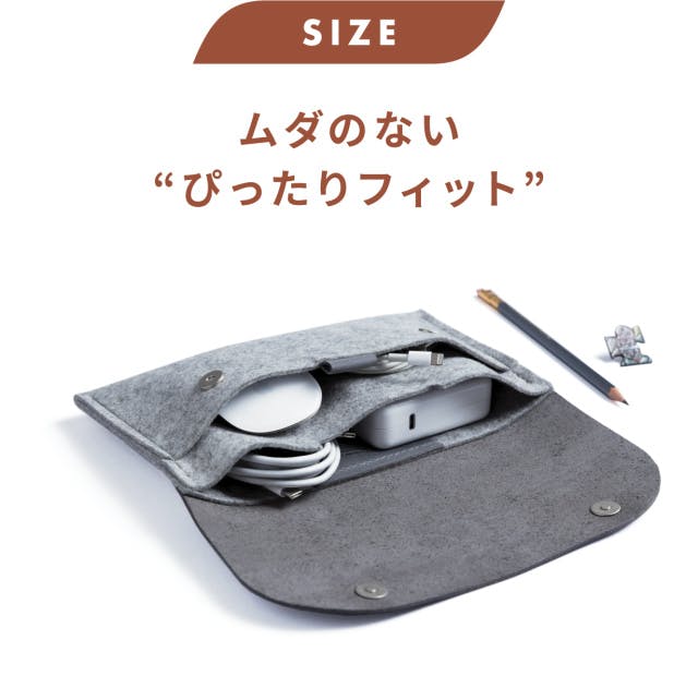 CITYSHEEPの “ケーブルオーガナイザー”なら、持ち運ぶアイテムをスッキリ定位置に収納。ウール100%で、軽くて上質な持ち心地。持ち運びの不安を解消します。