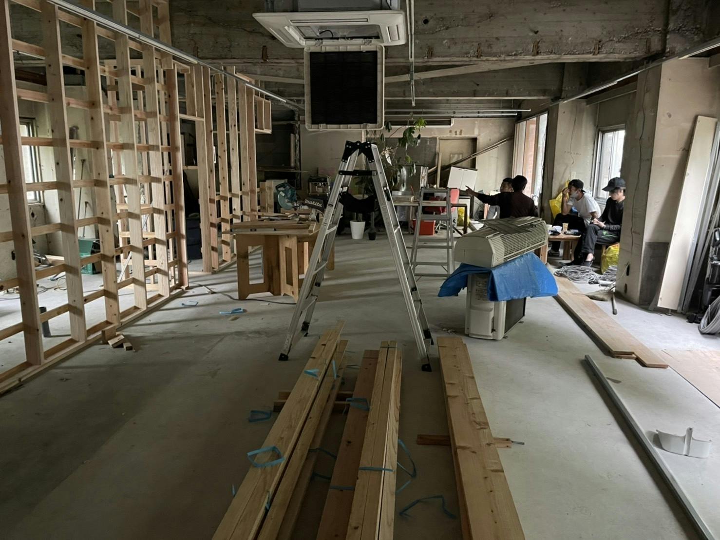 山から移動する4店舗を同時に進めてて、それぞれ事業内容も違うので部屋割りも、作り方も、配置もかなり頭を悩ませました。(自分のお店じゃないだけに神経使いました)
