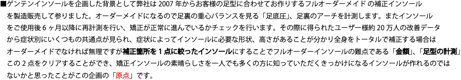 現在企画中である「ゲンテンインソール」第二弾の開発の費用に当てさせて頂きます。