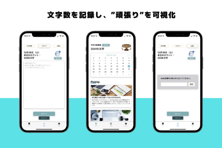 →その日のうちに書いた文章をコピペしてアプリ内に貼り付けると、その文字数を判定して記録することが可能です。また、noteの記事のURLを貼り付けるだけで自動的に文字数を算出することも出来ます。