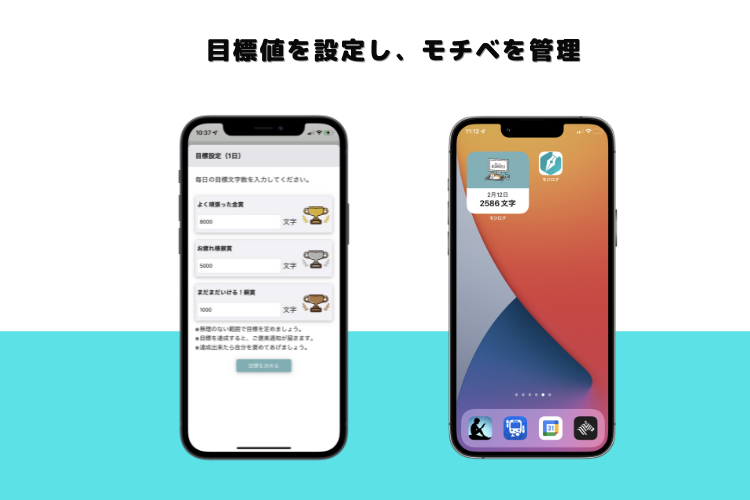 →「毎月〇〇文字を書く」という目標を登録することで、現在の目標達成率を測ることが出来ます。こちらの機能は、今は簡易的なものになりますので、まだまだ改善の余地があると考えています。