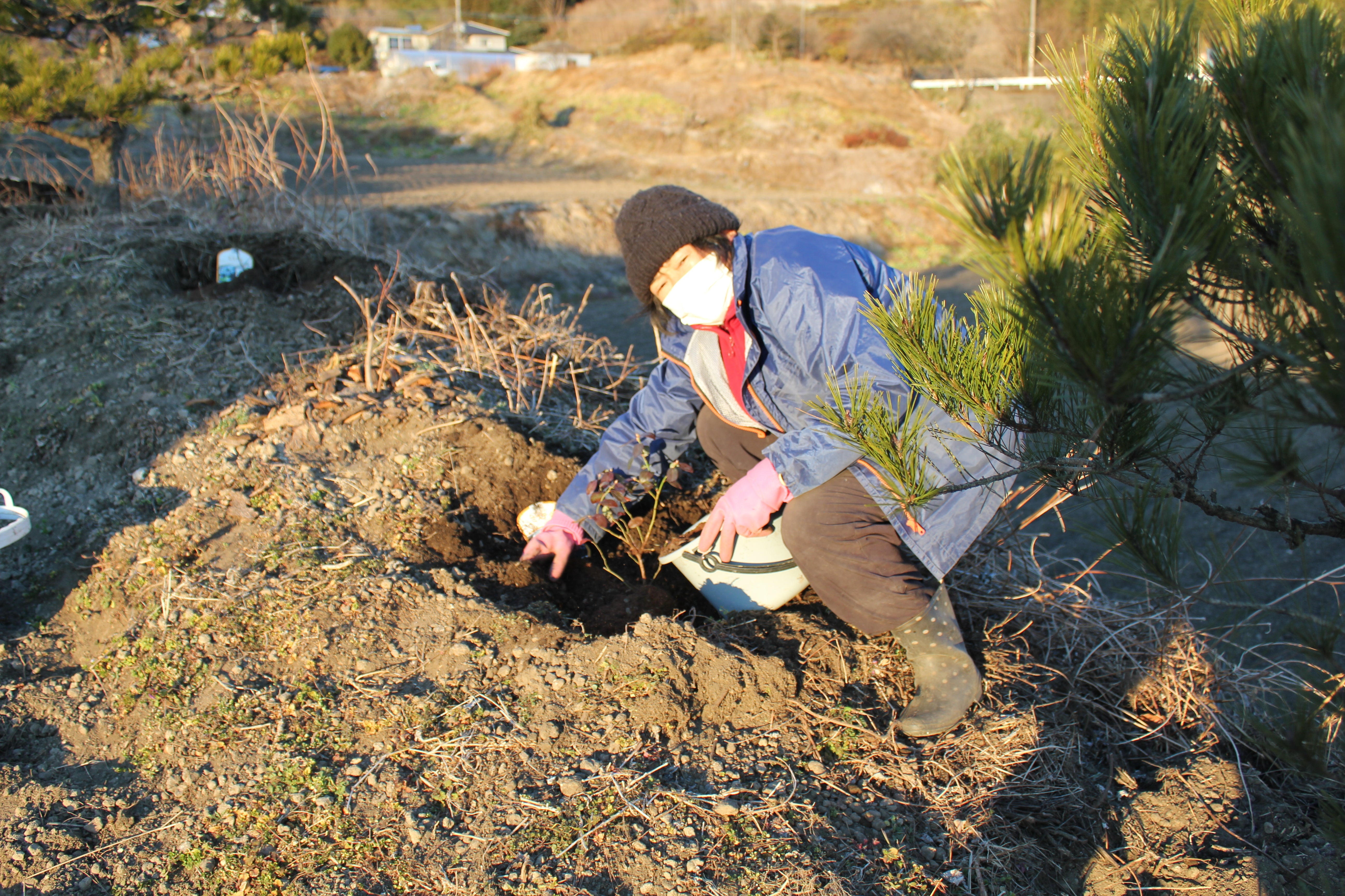 だいぶ暖かくなってきました。今日までブルーベリーの苗木を合計21本植えました。~甘~い大粒の実がなりますように! ~