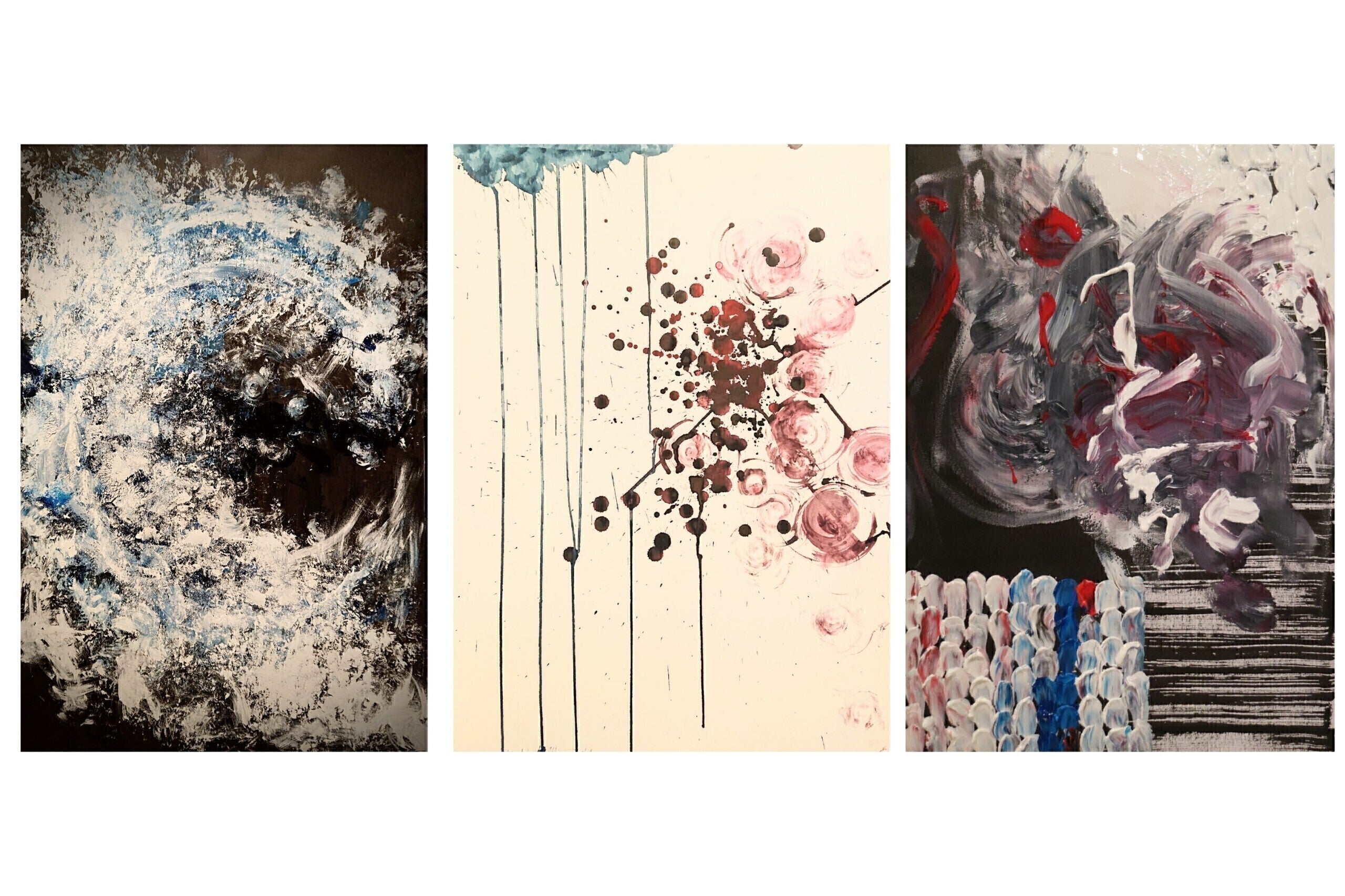 自宅に戻り、「どうせならこの瞬間を残そう」と思い立ち、動画をまわし、絵の具を手にとりました。手のひらをめちゃめちゃにしながら、必死に描きました。