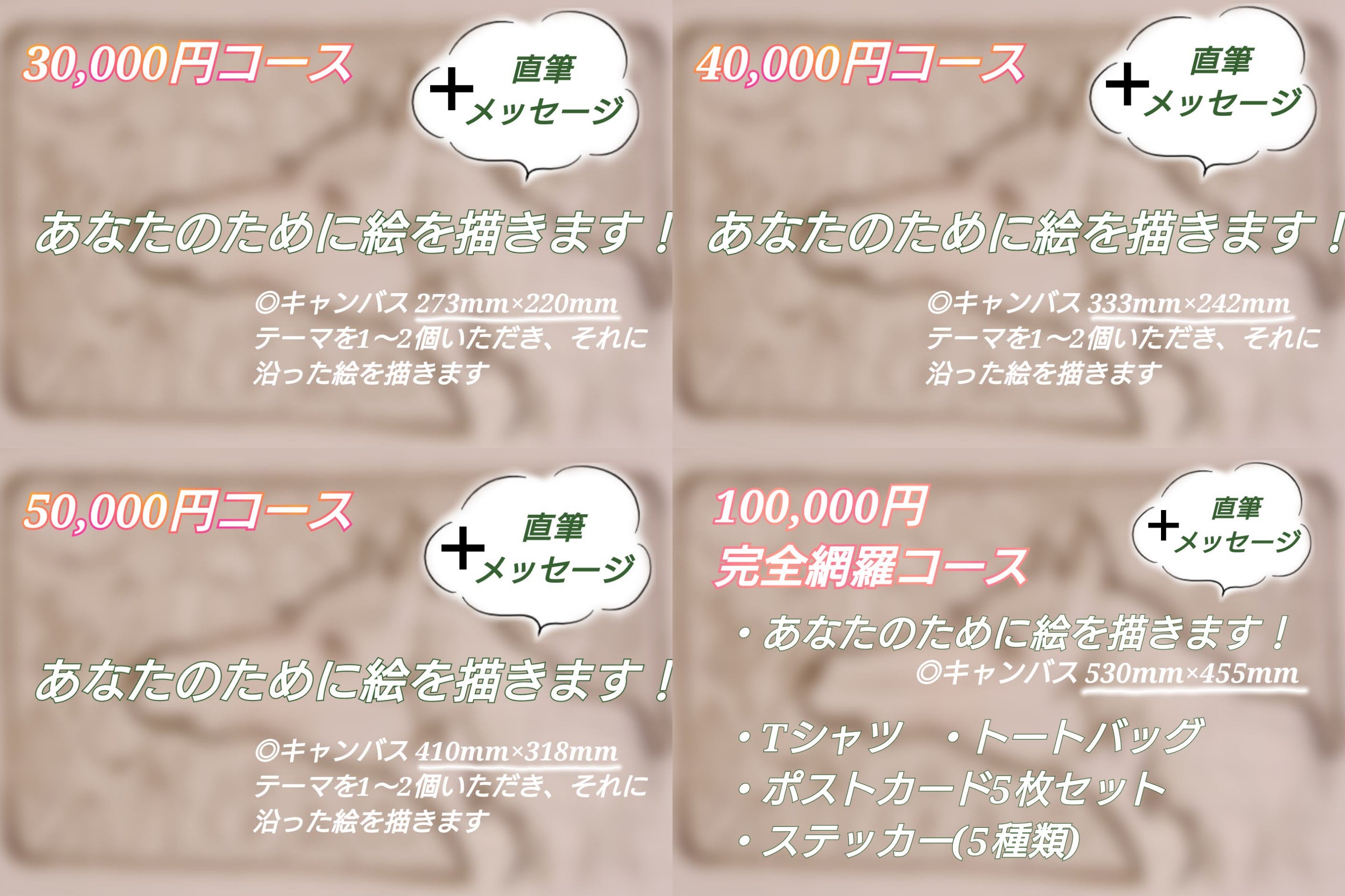◎30,000円~のコースにある絵は、1~2個テーマを出していただき、そのテーマに沿った絵を私なりに描かせていただきます