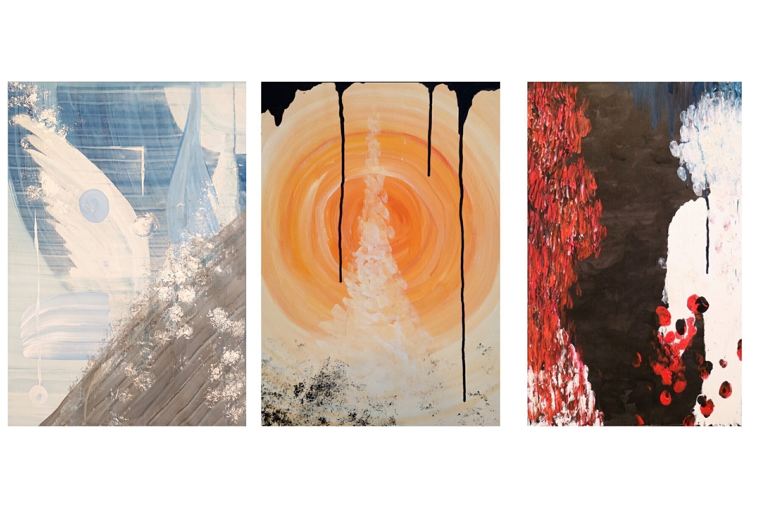 自宅に戻り、「どうせならこの瞬間を残そう」と思い立ち、動画をまわし、絵の具を手にとりました。手のひらをめちゃめちゃにしながら、必死に描きました。
