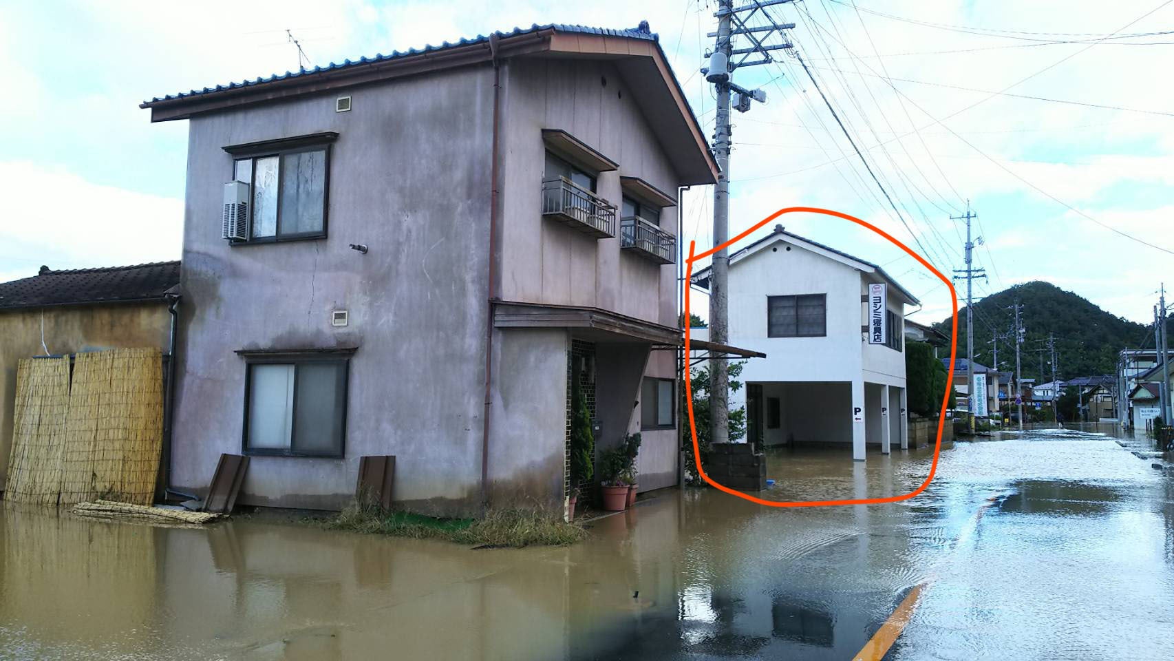 台風19号災害、水が少し引いたところ