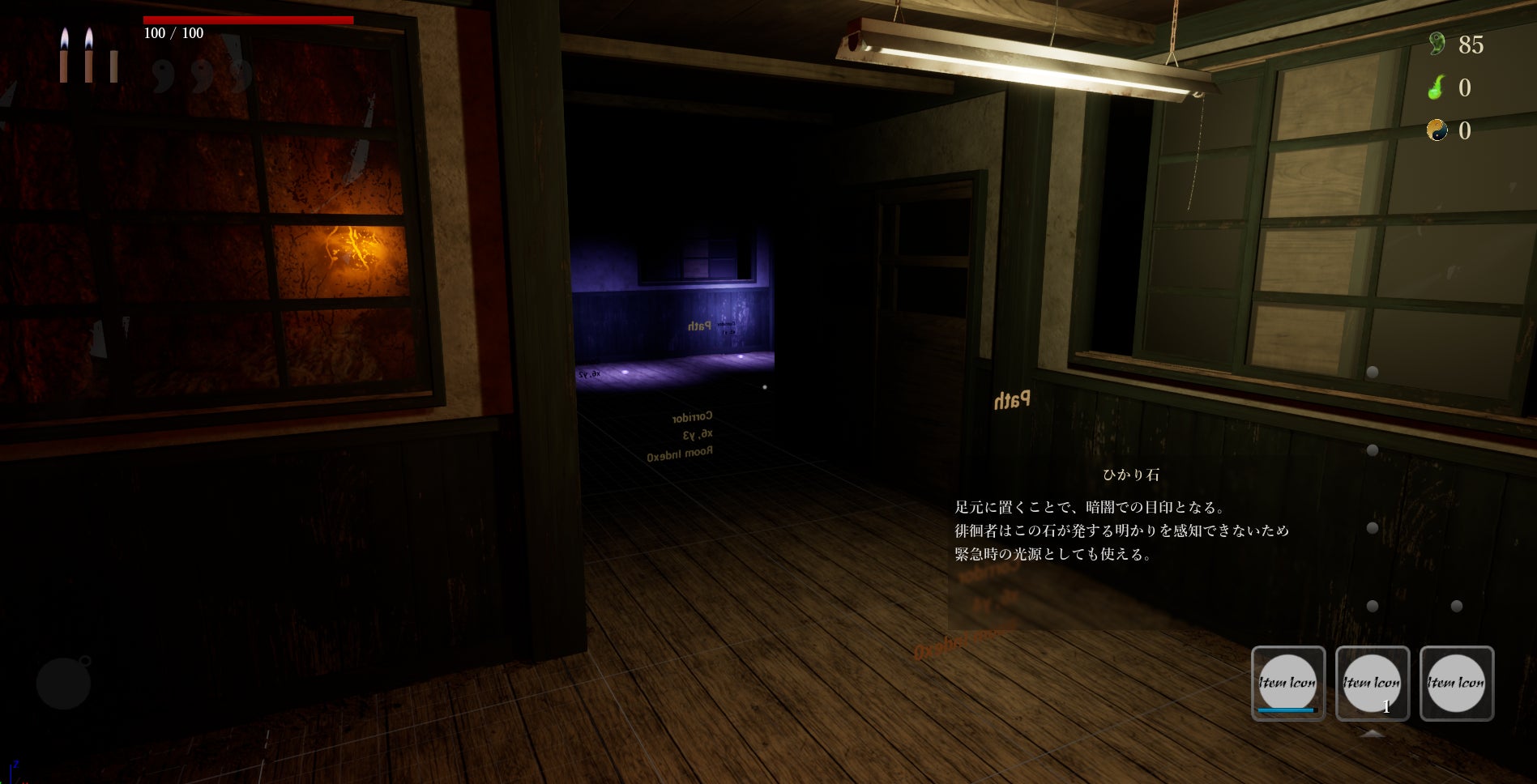 恐ろしい徘徊者から逃げつつ広大な和風ランダム生成マップに散らばる勾玉を集めて