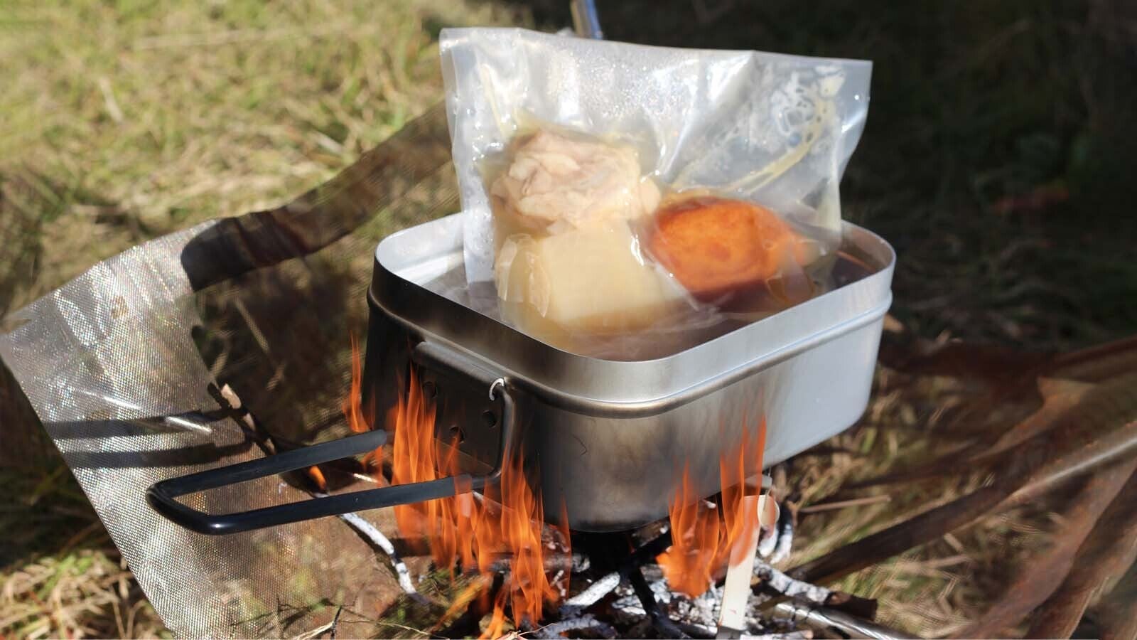 アウトドアシーンでもOK!袋のまま湯煎したりメスティンや鍋に移し温めるだけ!