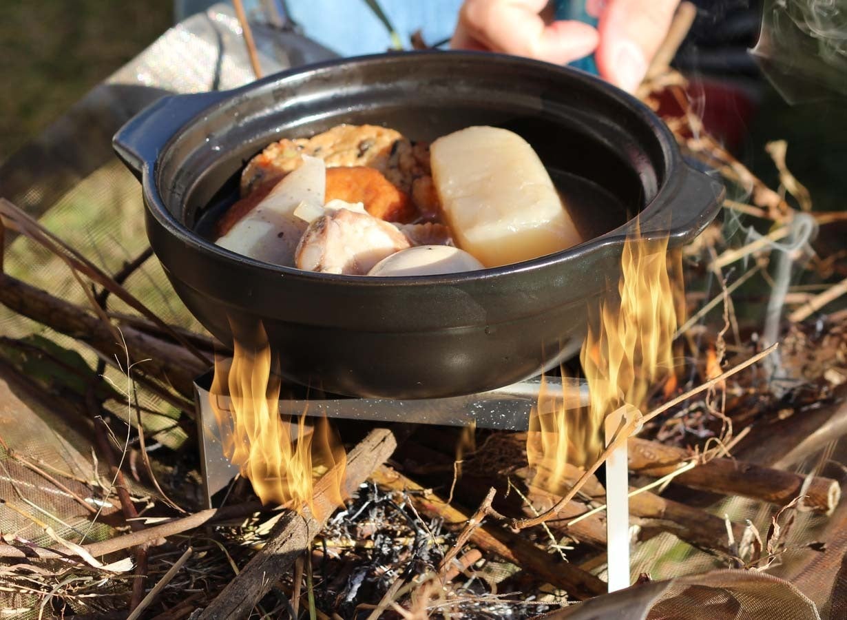 ミニ土鍋(17cm)でも焚き火にかけてみました。
