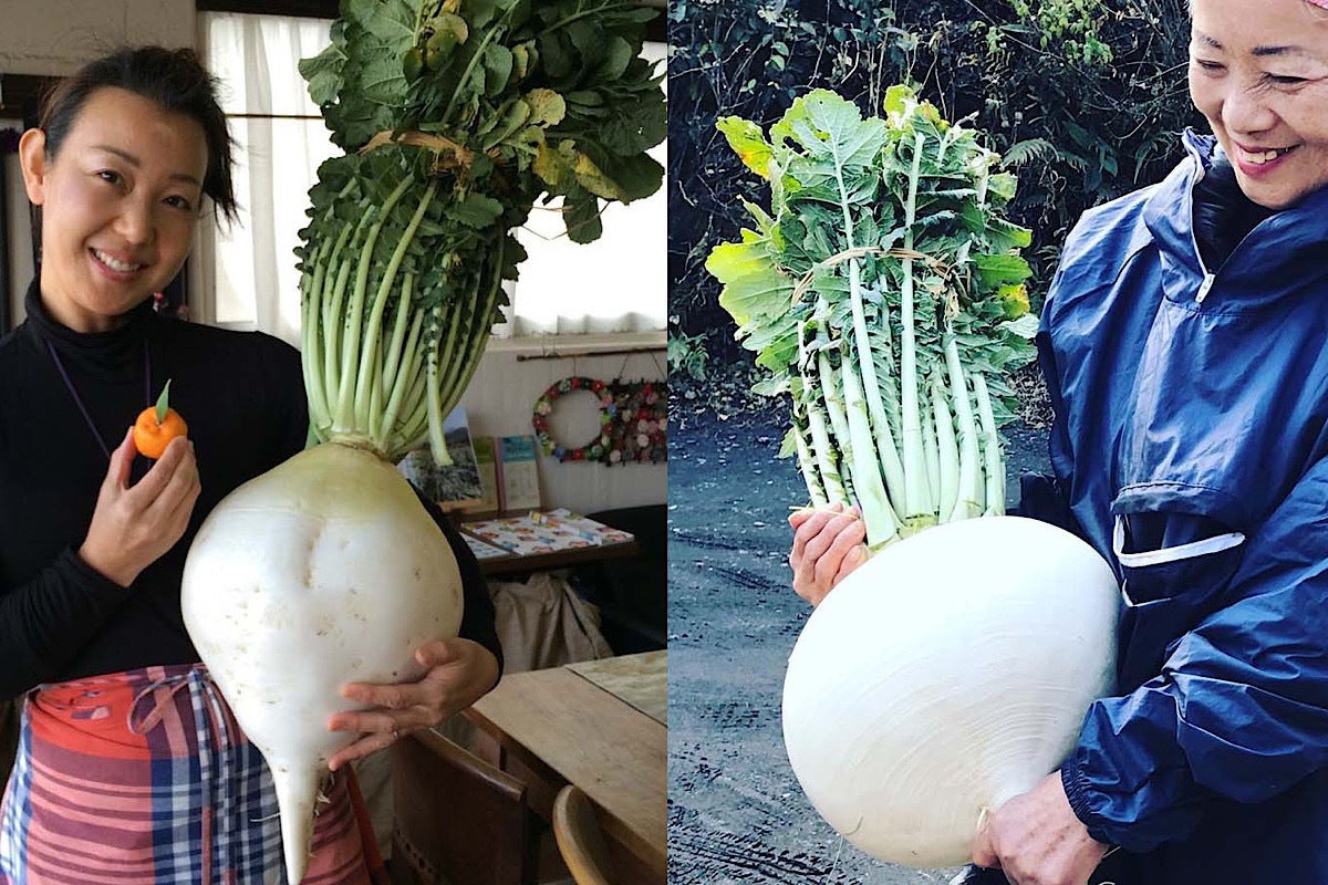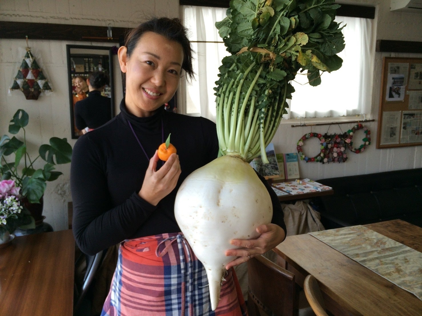 ▲大きさに仰天!室屋さんの農薬を一切使っていない桜島大根
